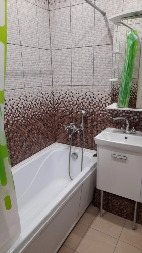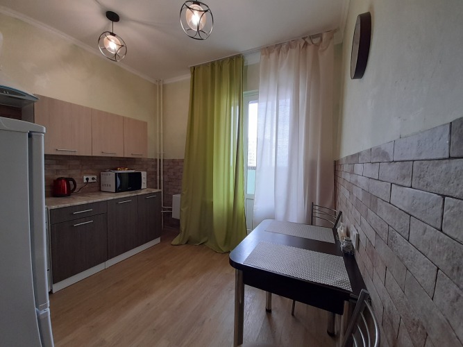 К услугам гостей однокомнатная квартира с балконом на 16 этаже 21-этажного дома с видом на окрестности. В доме два лифта — 1 грузовой и 1 пассажирский, у подъезда имеется пандус. Подойдет для гостей, командировочных, спортсменов и жителей города. Во дворе бесплатная парковка, детские площадки, тренажёры, футбольная и волейбольная площадки.