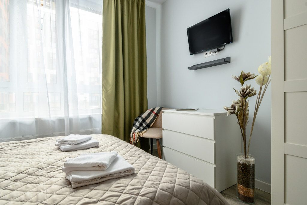В номере вы найдёте телевизор. Оснащение зависит от выбранной категории номера.