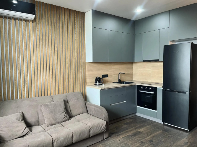 В квартире есть необходимое для отдыха и проживания: 2 спальных места диван-кровать, также возможно бесплатное дополнительное спальное место, бесплатные средства личной гигиены: зубные щётки, зубная паста, шампунь, гель, бальзам, жидкое мыло, фен для волос. В распоряжении гостей есть полностью оборудованная кухня: чайник, варочная индукционная панель, холодильник, комплект столовых приборов, посуда, необходимая для приготовления пищи, лоджия с видом на город, постельное бельё и махровые полотенца для каждого гостя до 3 штук. К услугам гостей в квартире также есть кондиционер, Wi-Fi, телевизор, стиральная машина и необходимые средства для стирки, утюг, гладильная доска, сушилка.