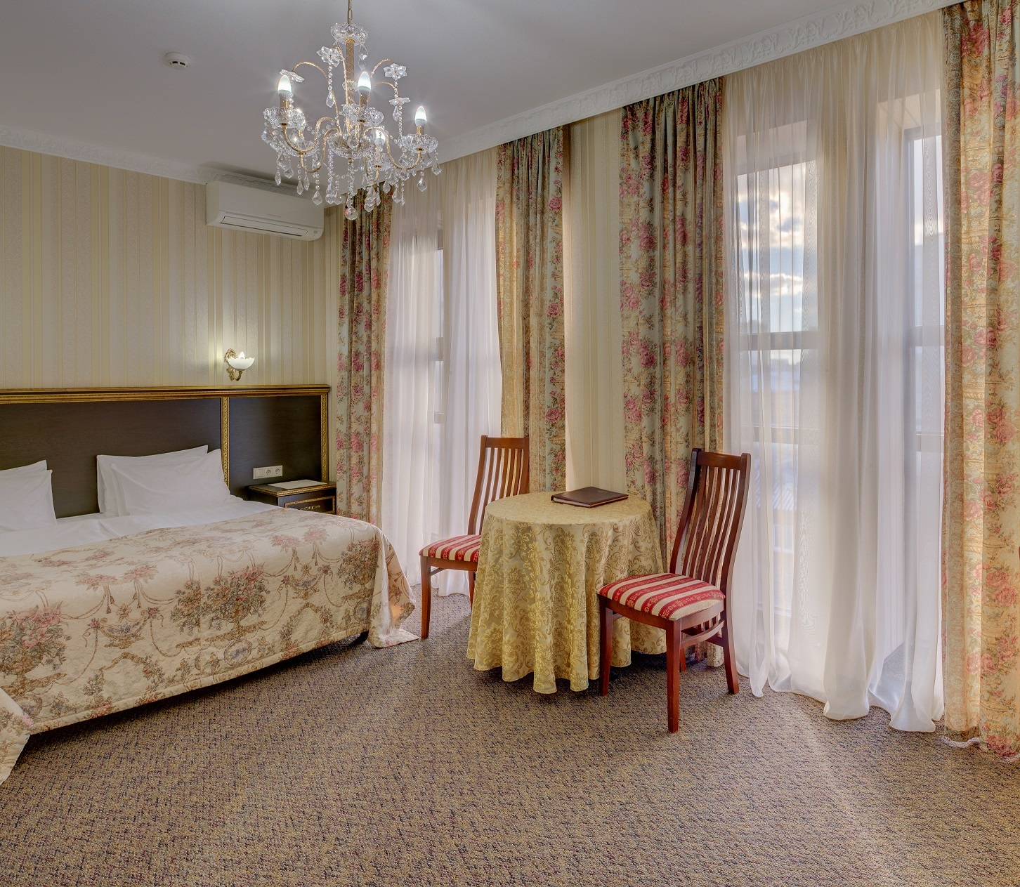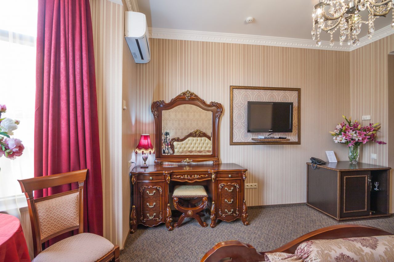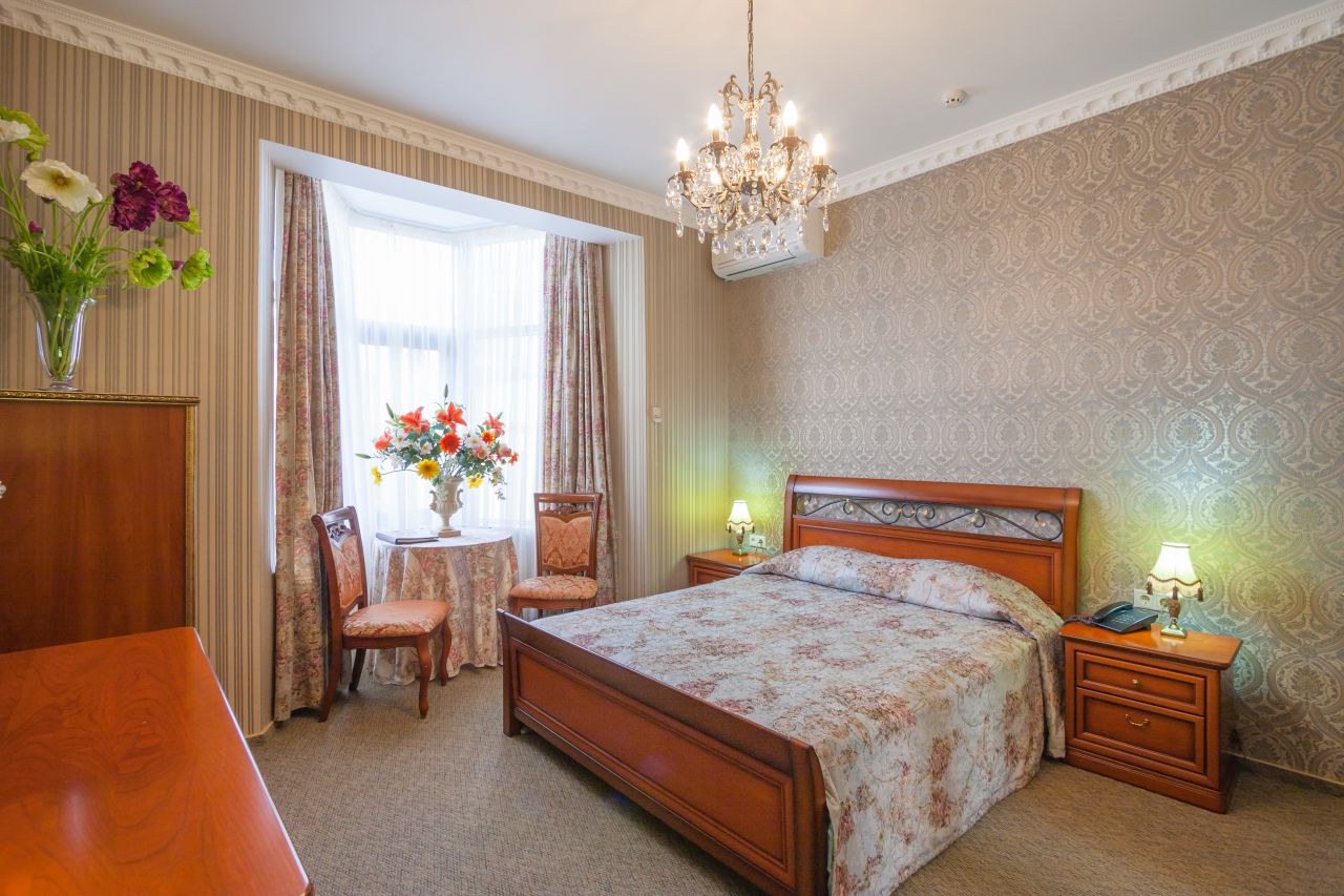 Изысканный просторный однокомнатный номер с классической мебелью, двуспальной кроватью и письменным столом идеально подходит для комфортабельного пребывания в гостинице. В ванной комнате предусмотрена душевая кабина, пол с подогревом. Площадь номера - 50 квадратных метров.