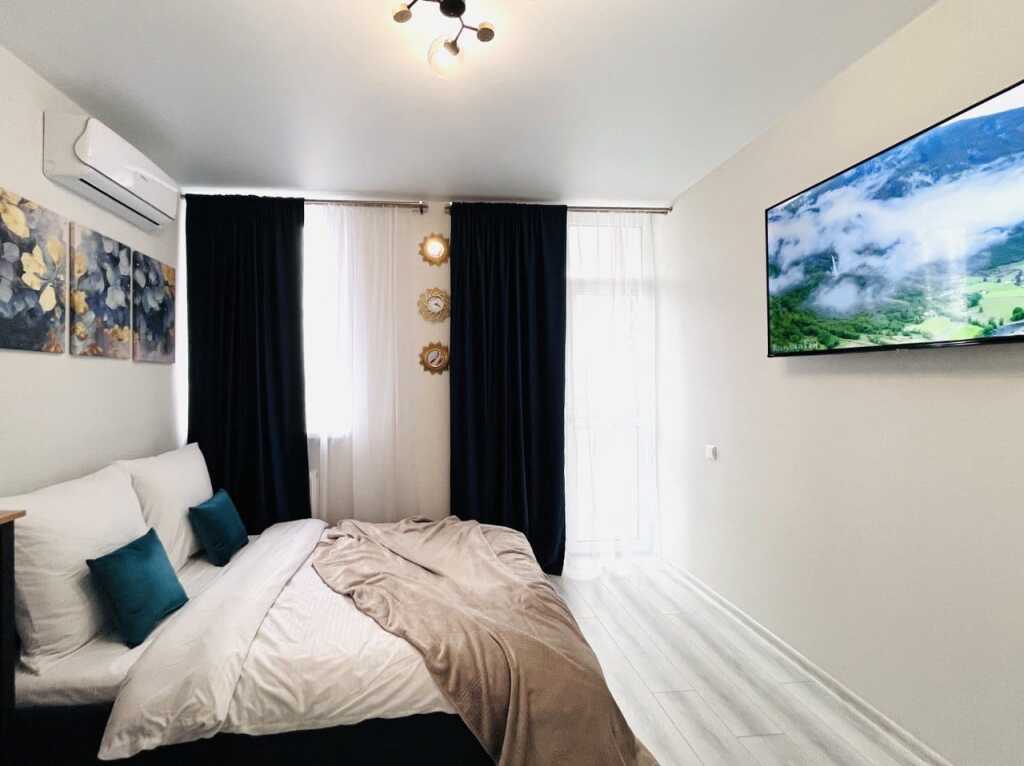 В номере вы найдёте телевизор. Оснащение зависит от выбранной категории номера.