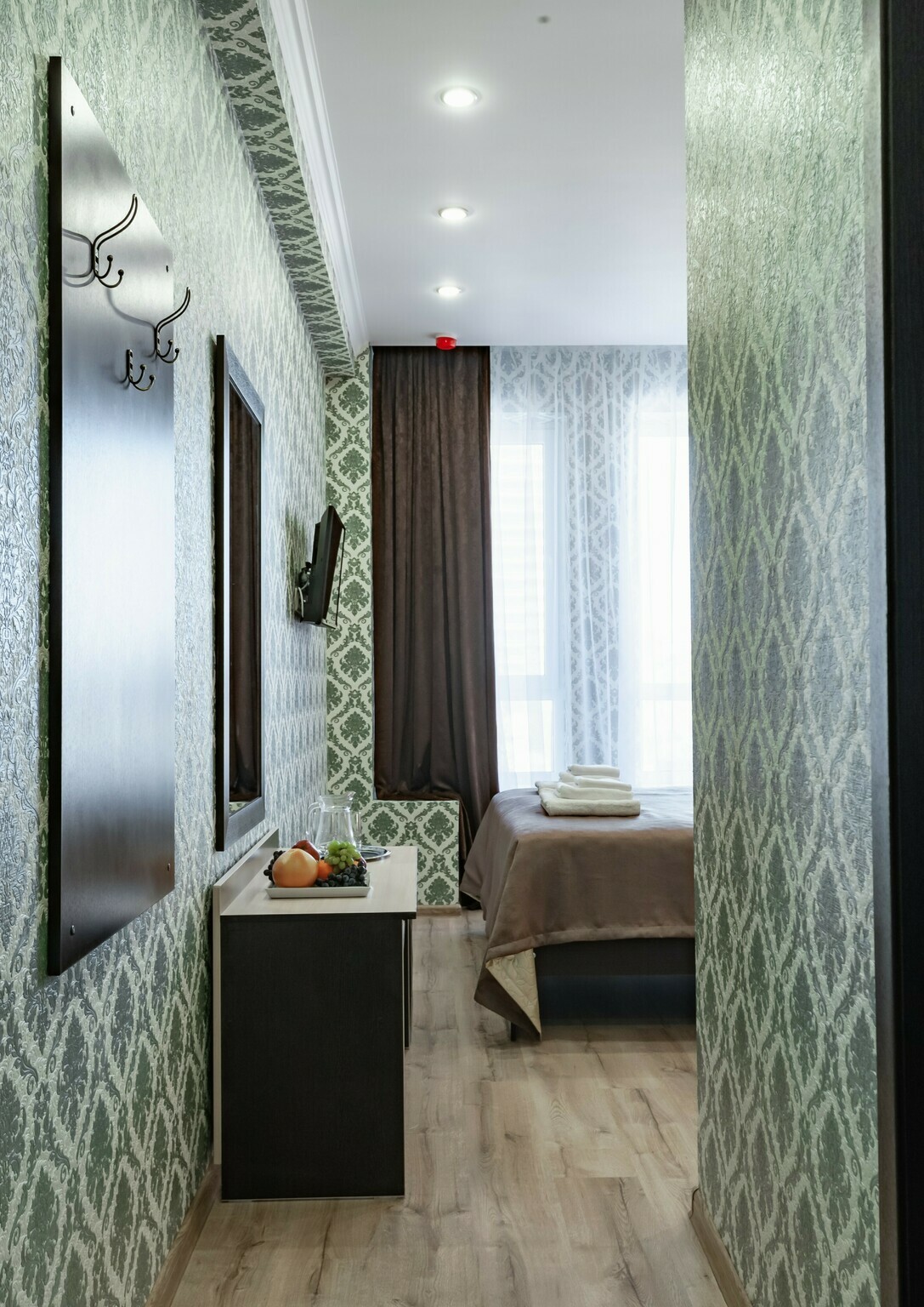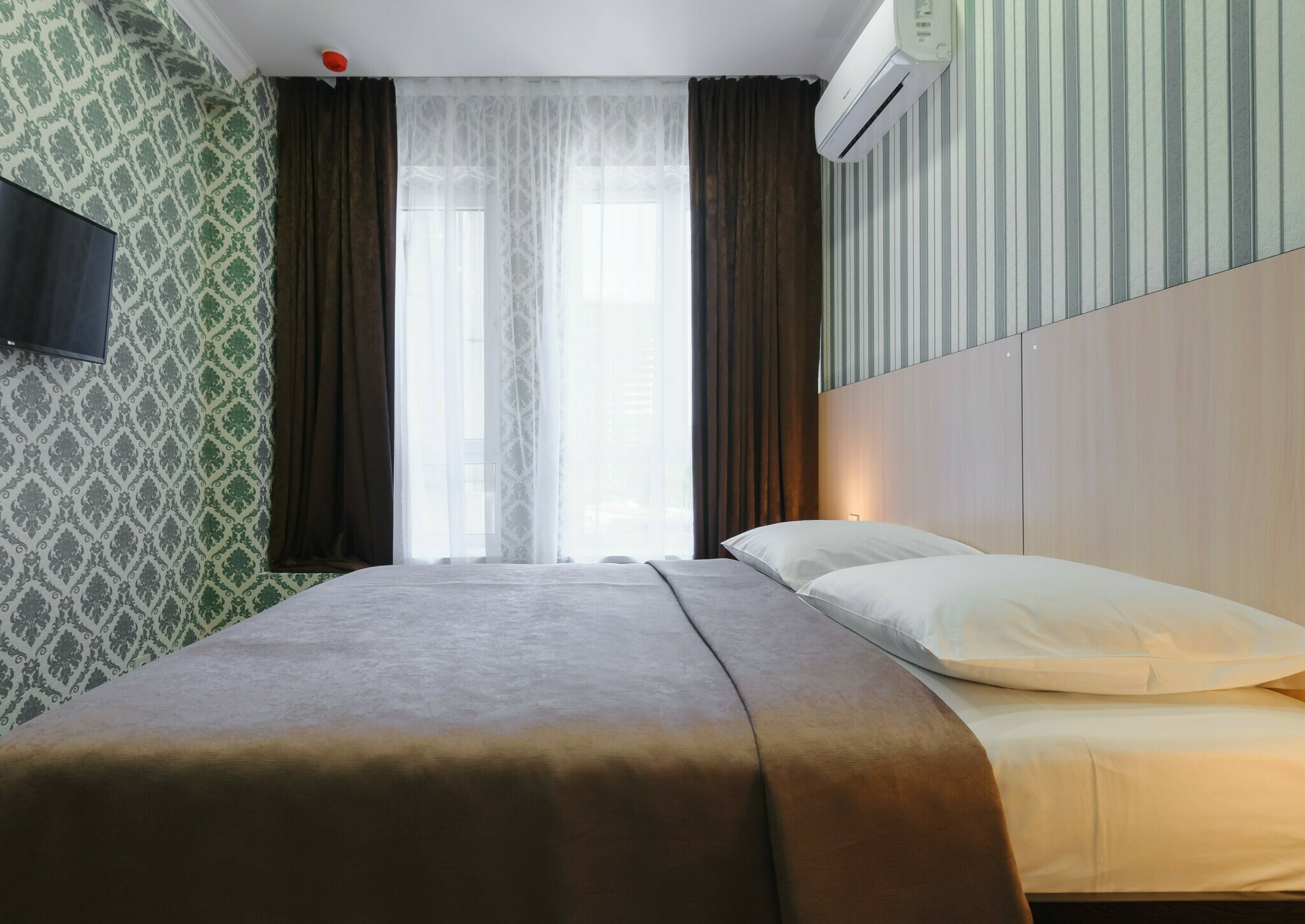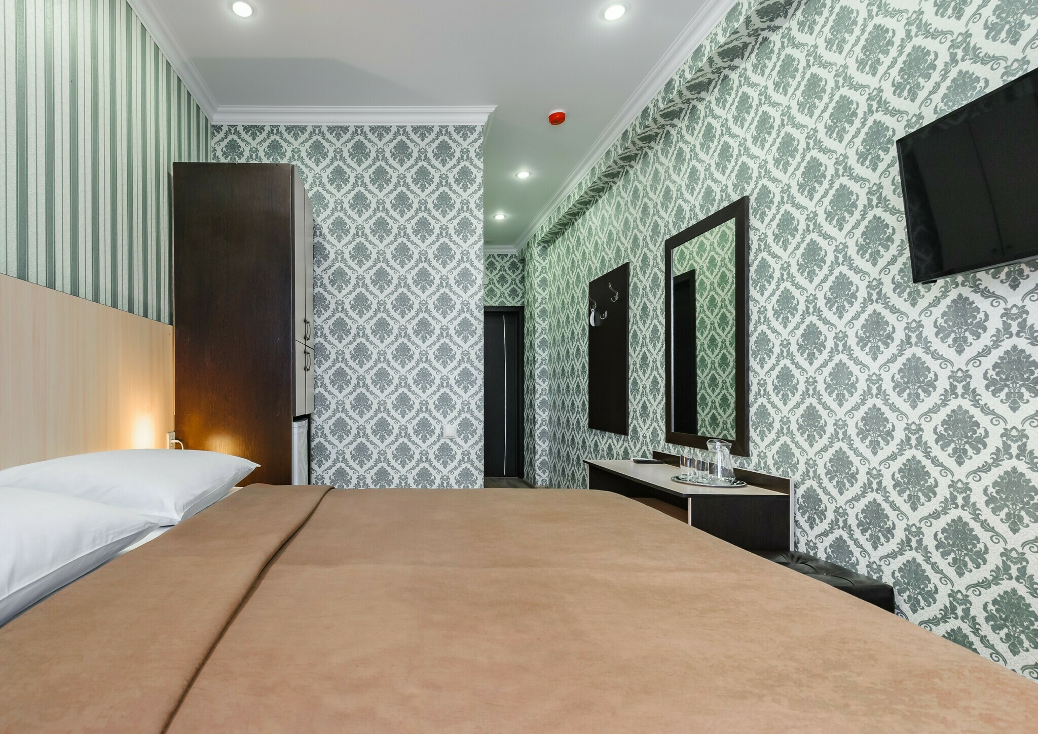 Номер с современным дизайном для туристических и бизнес-поездок. Оснащен всем необходимым для длительного проживания и важными в быту мелочами. Цветовая палитра: свежие фисташковые или персиковые тона. В номере: две раздельные кровати, прикроватные тумбочки, ТВ, Wi-Fi, кондиционер, холодильник, шкаф для одежды, столик, электрический чайник, посуда, туалетные и гигиенические принадлежности, дополнительный комплект: подушка и одеяло. Фен и утюг предоставляется по запросу.