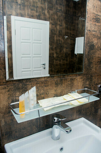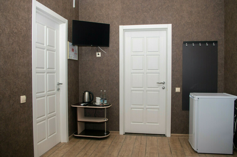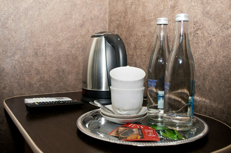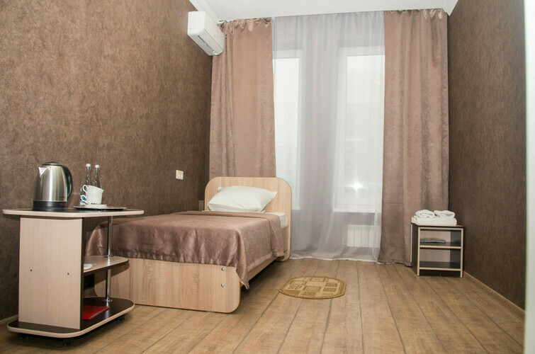 Однокомнатный номер состоящий из прихожей, спальной зоны и собственной ванной комнаты. Оптимальный вариант для транзитных гостей и поездок в командировку. В номере: две раздельные кровати, прикроватные тумбочки, ТВ, Wi-Fi, кондиционер, шкаф для одежды, столик, электрический чайник, посуда, туалетные и гигиенические принадлежности, дополнительный комплект: подушка и одеяло.