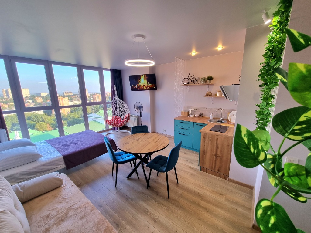 Квартира «Студия панорамный вид» располагается в Ростове-на-Дону. Эта квартира находится в 5 км от центра города. Рядом — парк имени Н. Островского, стадион «Олимп-2» и парк имени Октябрьской революции.