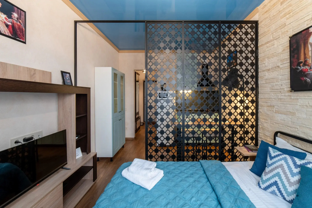 В номере вы найдёте телевизор. Оснащение зависит от выбранной категории номера.