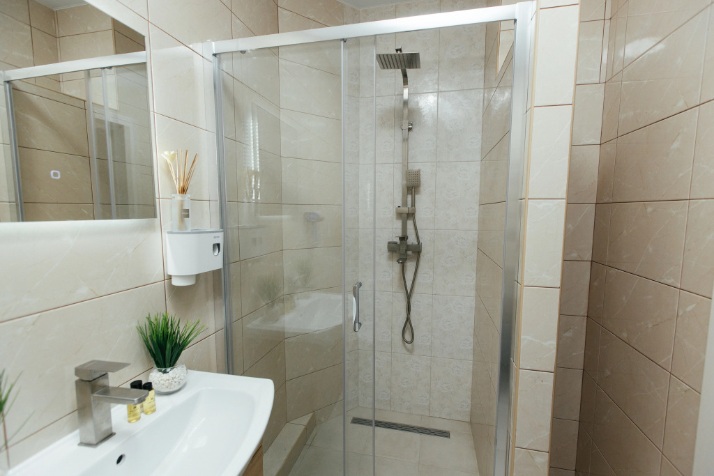 В ванной комнате есть душ, стиральная машина, гигиенические принадлежности.