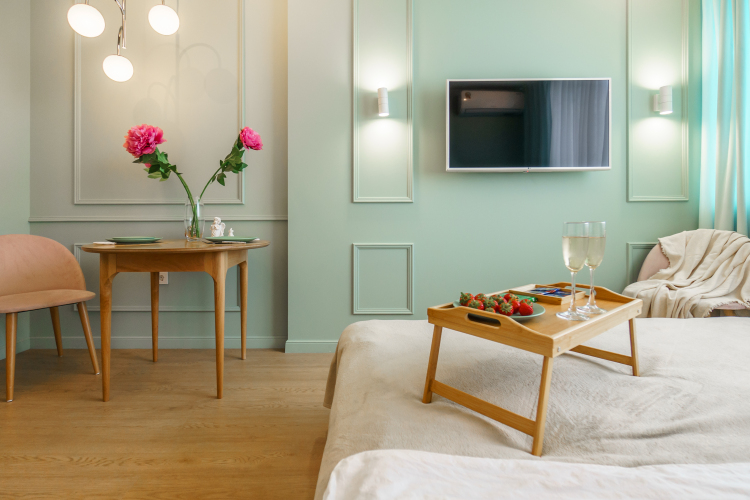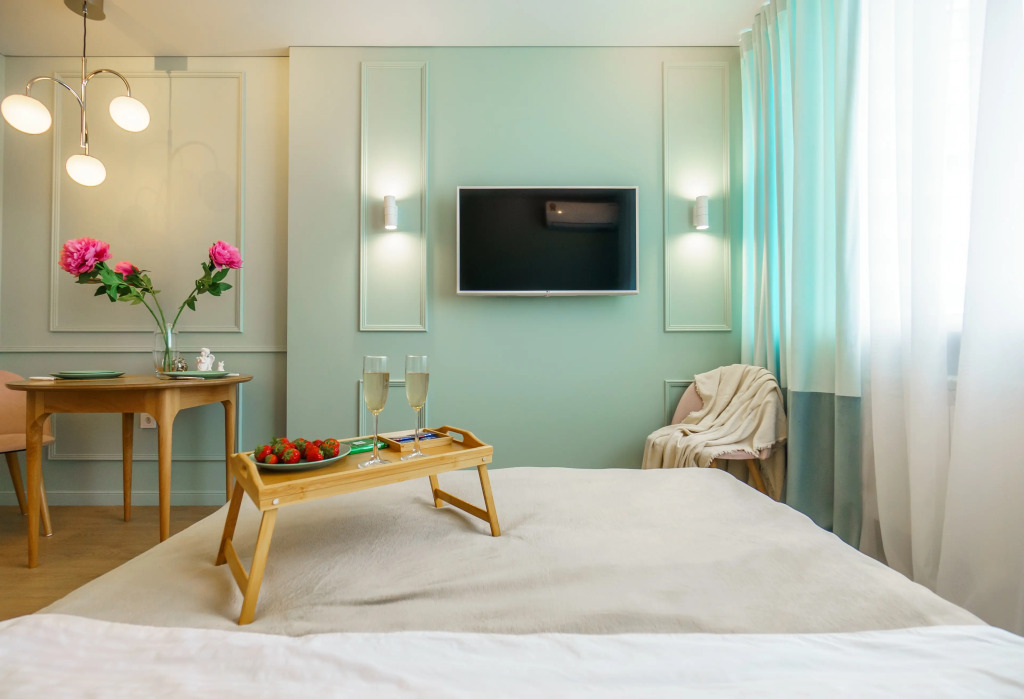 В номере вас будут ждать телевизор. Оснащение зависит от выбранной категории номера.