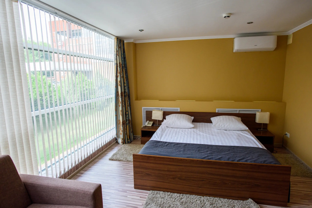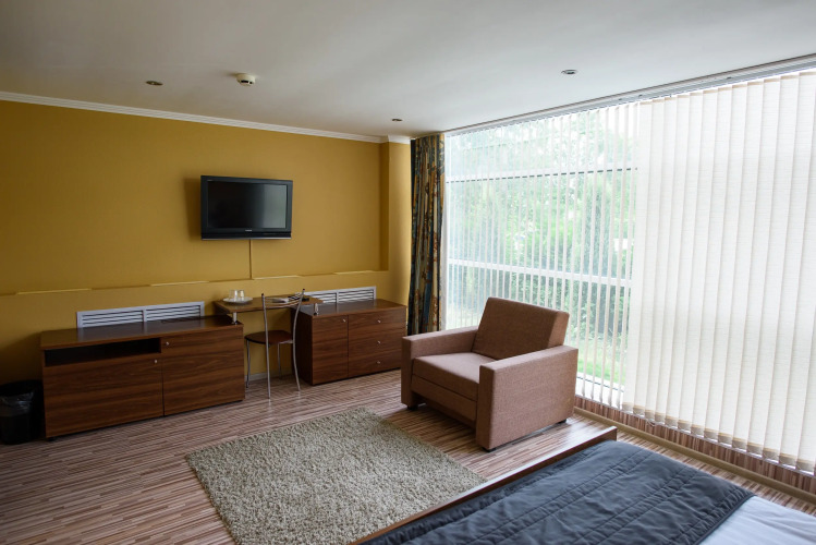 Чтобы вы могли отдохнуть после долгого дня, в номере есть телевизор и халат. Оснащение зависит от выбранной категории номера.