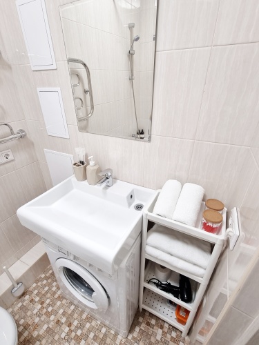 Удобно для гостей с ограниченными возможностями: на верхние этажи гостей поднимает лифт. А ещё в распоряжении гостей гладильные услуги. Персонал апартаментов говорит на русском.