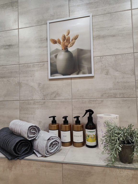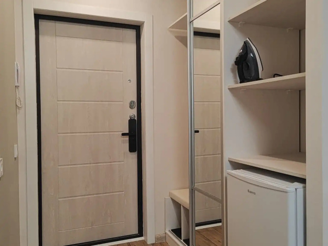 В квартире есть двуспальная кровать 140×200 см и раскладное кресло. Гостям предоставляются постельное бельё, полотенца, гигиенические принадлежности и посуда для трёх человек. В распоряжении гостей высокоскоростной Wi-Fi и Smart TV.