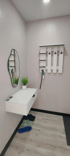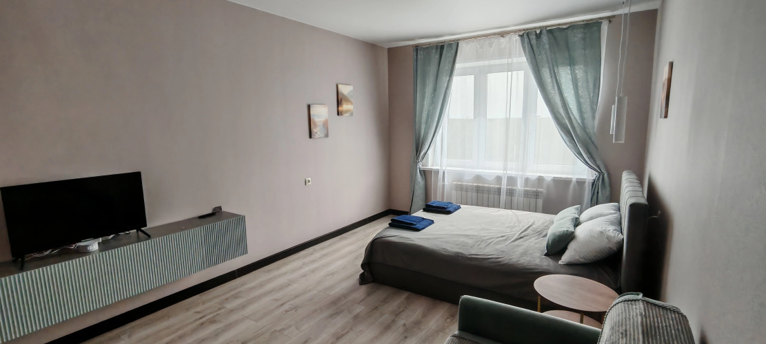 В квартире есть необходимое для проживания: двуспальная кровать 160 см на 200 см, диван 140 см на 200 см, постельное бельё, санузел с тёплым полом, душевая кабина 120 см на 80 см с тропическим душем, инсталляция, стиральная машина с функцией сушки белья, водонагреватель. Каждому гостю предоставляется по 2 полотенца.