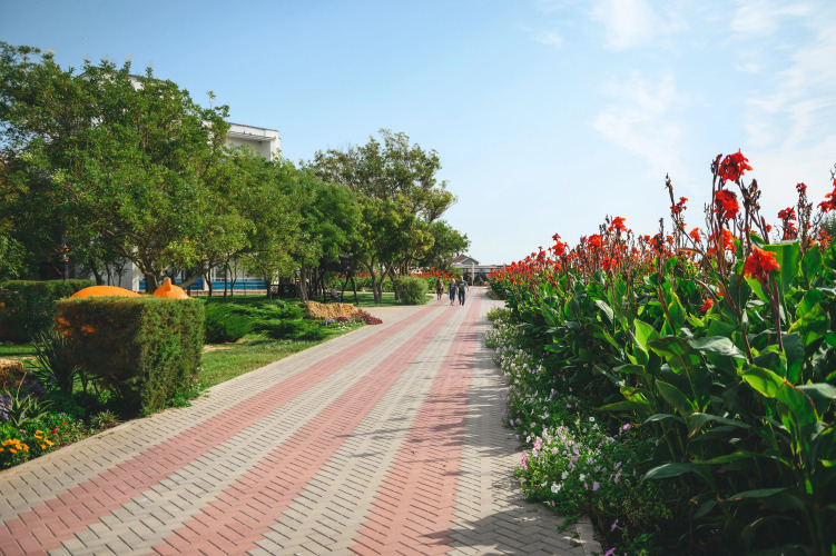 Важным дополнением ко всем программам является собственная «эко-тропа», маршрут которой плавно проходит через всю парковую зону санатория и включает аэрофитоталассо-аллею набережной, «Аллею Счастья» (розарий), «Лабиринт Души» (древнегреческий метод релакса и оздоровления), «массажную тропу», лужайки «аэрофитотерапии» (хвойная и лавандовая лужайки) и лужайку «релакса» («журчащий водопад»).