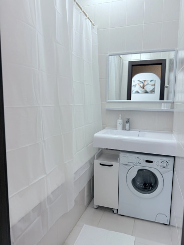 Гостям предоставляется постельное бельё и банные принадлежности. В ванной комнате есть: душ, фен, стиральная машина, стиральный порошок, шампунь, гель для душа. Оборудованная кухня с посудой и техникой, в наличии: микроволновая печь, чайник, электрическая плита и холодильник.