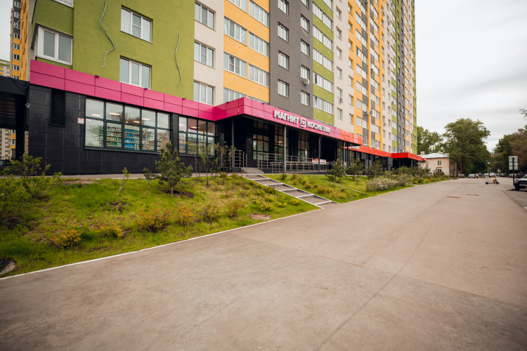 Квартира находится на 13 этаже жилого комплекса «Сокол». Во дворе дома расположена детская площадка, территория огорожена, двор без машин.