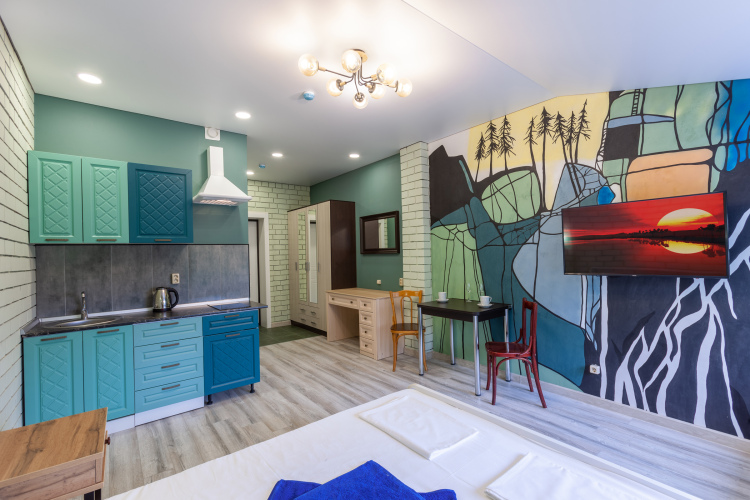 Номер уютно обставлен и оснащён необходимым, чтобы отдохнуть после долгого и насыщенного дня. Имеются телевизор и халат. Перечисленные услуги есть не во всех номерах.
