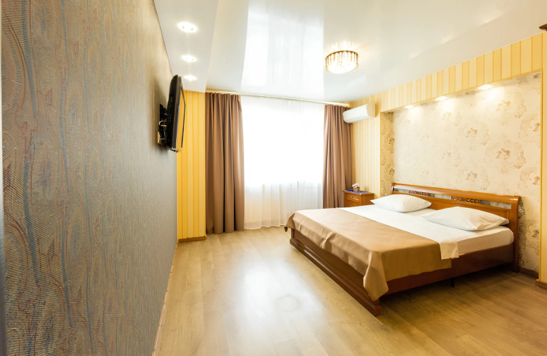 Номер уютно обставлен и оснащён необходимым, чтобы отдохнуть после долгого и насыщенного дня. Имеются телевизор. Перечисленные услуги есть не во всех номерах.