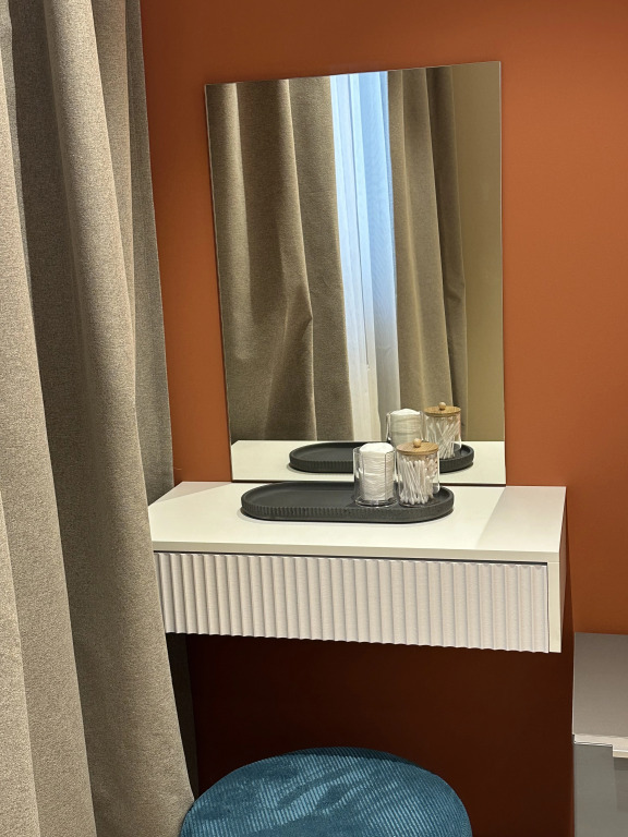 В квартире работает освещение разного типа и яркости, в гостиной есть рабочая зона, электронный замок для бесконтактного заселения.