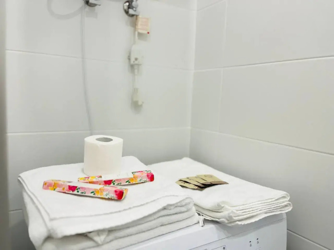 Гостям предоставляются одноразовые средства гигиены: гель для душа, шампунь, мыло, туалетная бумага, косметический набор, зубная щётка, зубная паста, тапочки, а также полотенца и стиральный порошок.