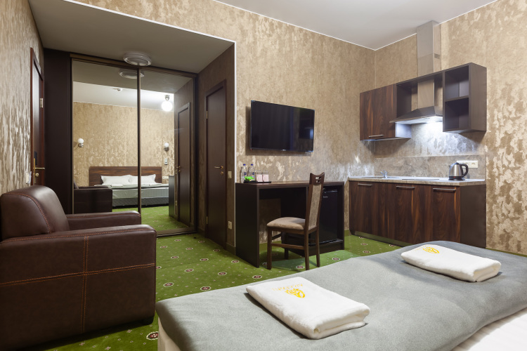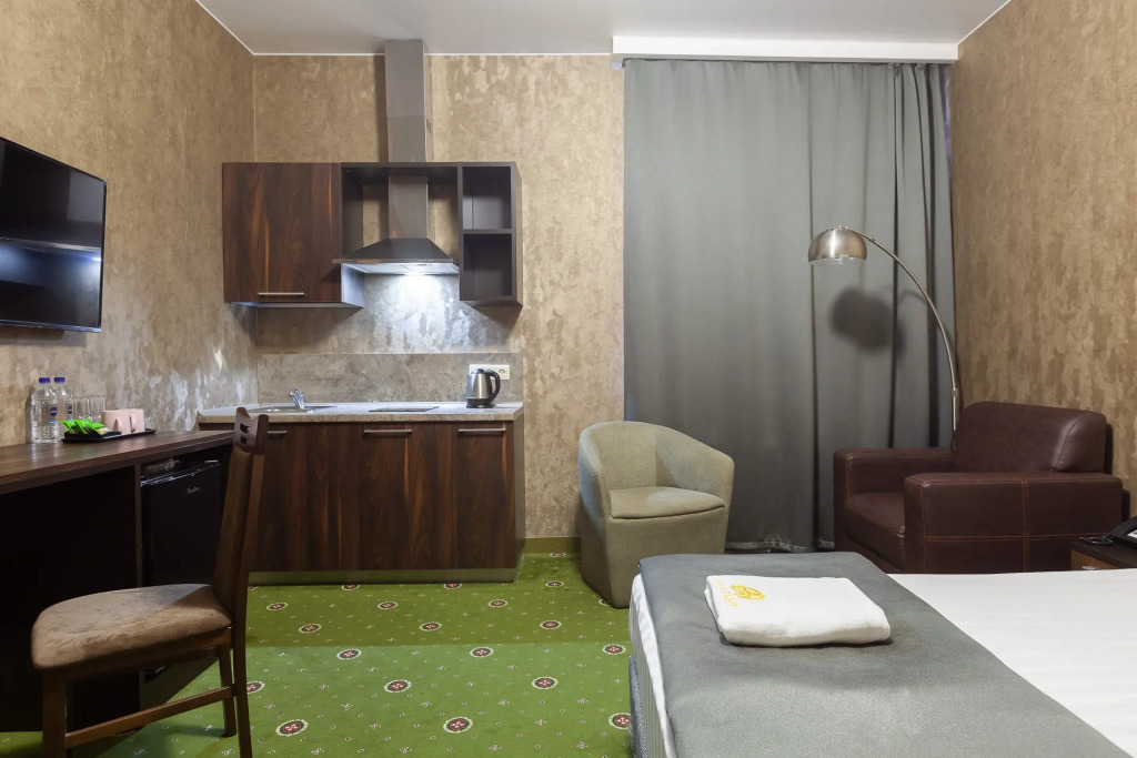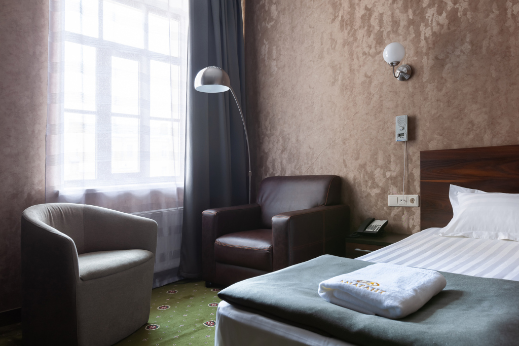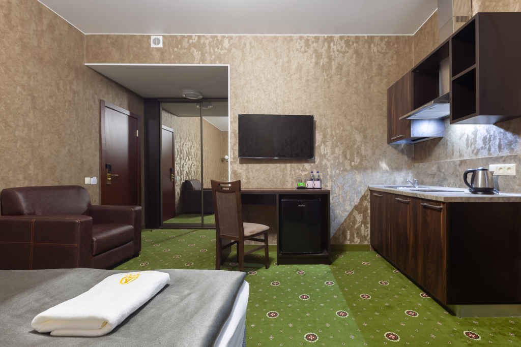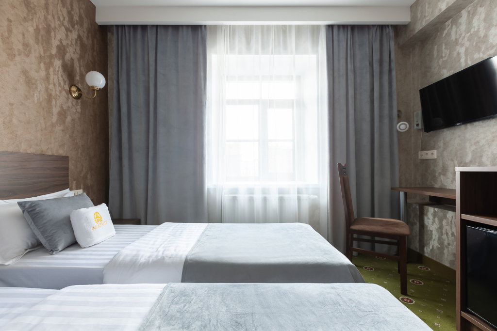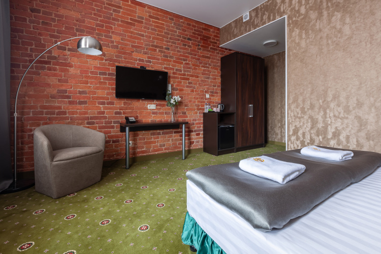 Номер уютно обставлен и оснащён необходимым, чтобы отдохнуть после долгого и насыщенного дня. Имеются телевизор. Перечисленные услуги есть не во всех номерах.