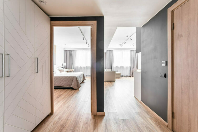 Дизайнерские апартаменты (1-комнатная квартира) категории DELUXE, площадью 43 кв. м. Апартаменты с отдельной спальней и кухней-гостиной полностью мебелированы и комфортны как для краткосрочного, так и долгосрочного проживания. В апартаментах установлена полностью оборудованная кухня с современной бытовой техникой (холодильник с морозильной камерой, варочная панель, вытяжка, микроволновая печь, посудомоечная машина). Гостям предоставляется полный комплект посуды, столовые приборы.