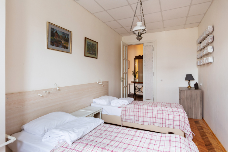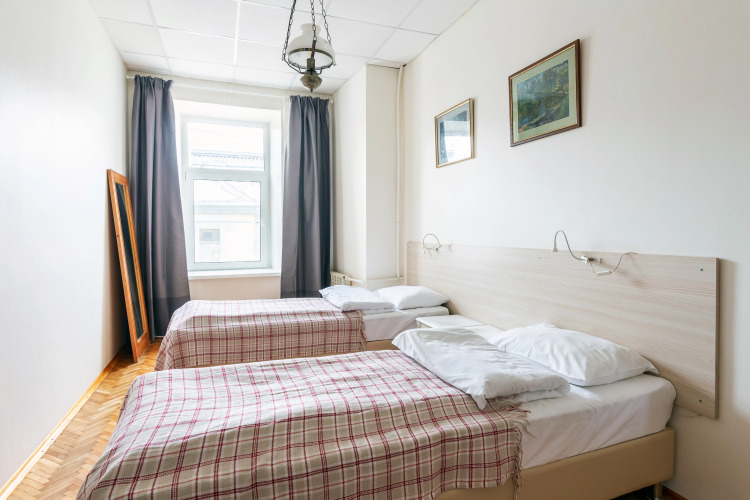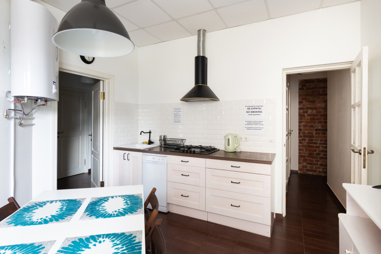Гостям предлагается трёхкомнатная квартира для восьмерых гостей, площадью 90 кв.м. В квартире две двуспальные кровати шириной 180 см, 4 односпальные кровати шириной 90 см. На кухне: газовая плита, чайник, холодильник, посудомоечная машина. Также есть стиральная машина, телевизор с функцией Smart TV, высокоскоростная сеть Wi-Fi, шлем виртуальной реальности для развлечений. Имеется два санузла, центральное отопление и бойлер для бесперебойной подачи горячей воды.