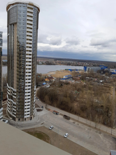 К услугам гостей апартаменты-студия площадью 35 кв.м, расположенные на 20-м этаже. Вид из окна на реку Нева.