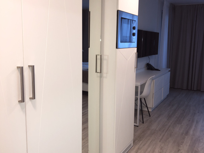 Здесь будем баловать себя водными процедурами: есть бассейн. Удобно для гостей с ограниченными возможностями: на верхние этажи гостей поднимает лифт. Гостям доступны и другие услуги. Например, гладильные услуги. Сотрудники апартаментов поддержат беседу на русском.