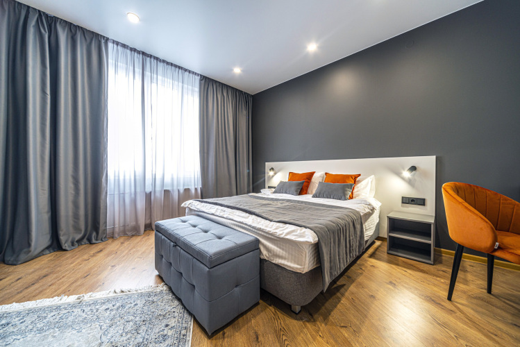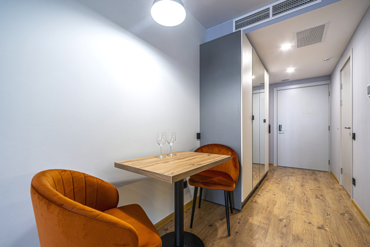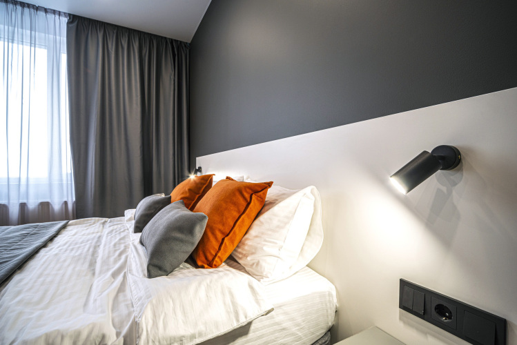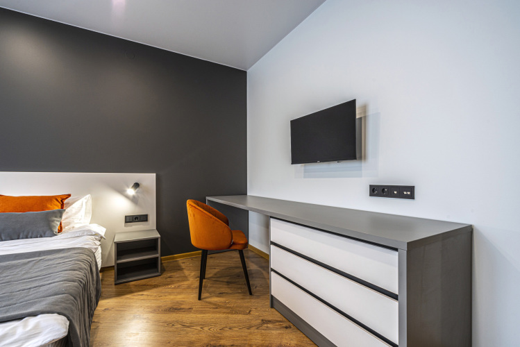 Номер уютно обставлен и оснащён необходимым, чтобы отдохнуть после долгого и насыщенного дня. Имеются телевизор. Перечисленные услуги есть не во всех номерах.