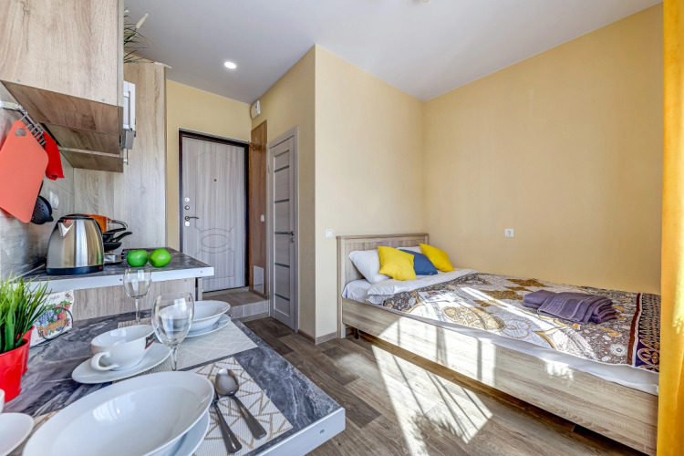 В некоторых студиях возможно трёхместное размещено. Спальное место размером 90х180 см (раскладушка). Подходит для детей и подростков до 16 лет.