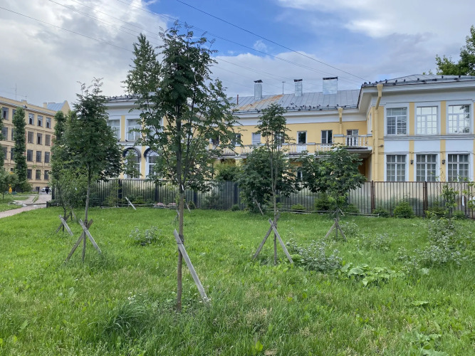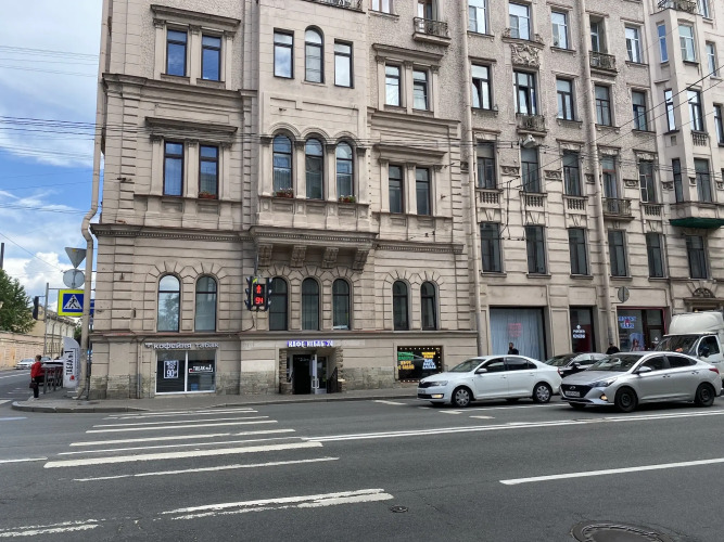 Апартаменты находятся на 3 этаже 6-этажного дома с лифтом. Окна квартиры выходят на обе стороны здания. С одной стороны окна кухни-гостиной выходят на Лермонтовский проспект, а из двух других комнат открывается вид во двор.
