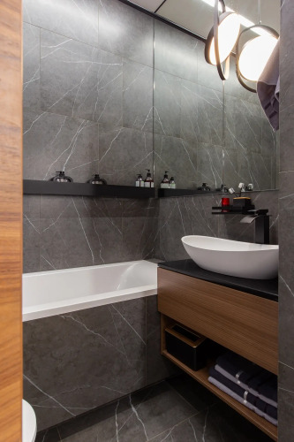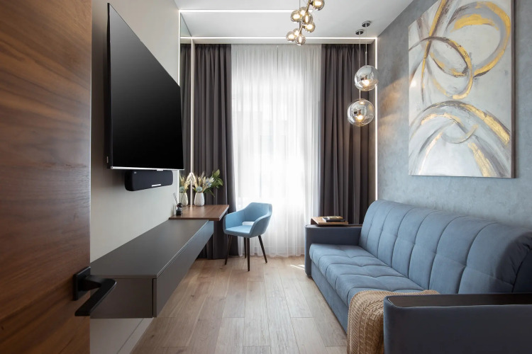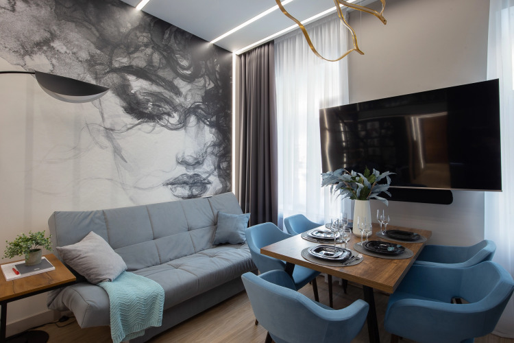 Апартаменты с минималистичным интерьером с акцентами в стиле лофт подходят для размещения до 9 гостей, имеется две спальни и две ванные комнаты. Парковка платная.