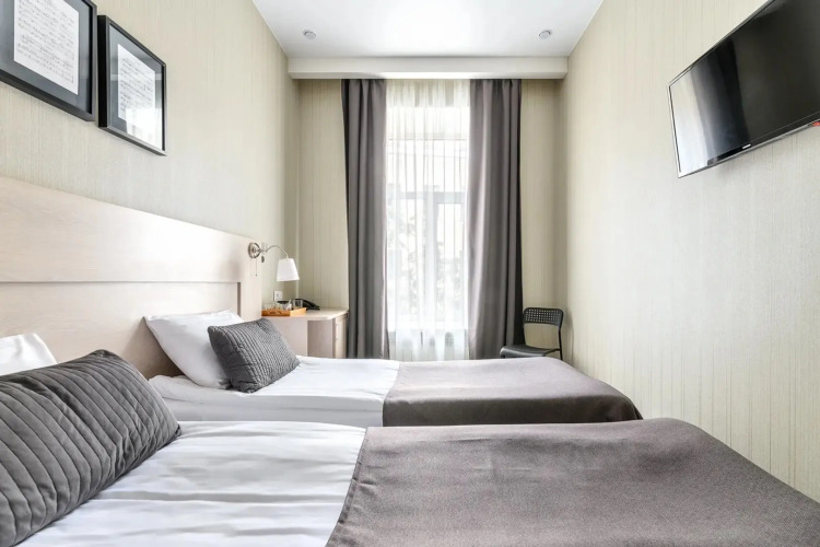Номер уютно обставлен и оснащён необходимым, чтобы отдохнуть после долгого и насыщенного дня. Имеются телевизор. Оснащение зависит от выбранной категории номера.