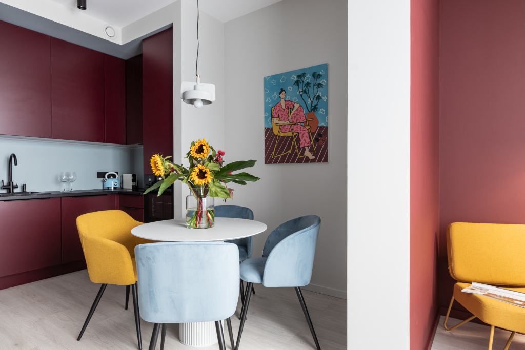 Возможно размещение до четырёх гостей. В апартаментах доступны: электрический чайник, микроволновая печь, посудомоечная машина, варочная панель, кухонные принадлежности, кондиционер, гардеробная для одежды, телевизор, постельное бельё и полотенца по количеству гостей, бесплатный Wi-Fi, фен, стиральная машина, утюг, гладильная доска.