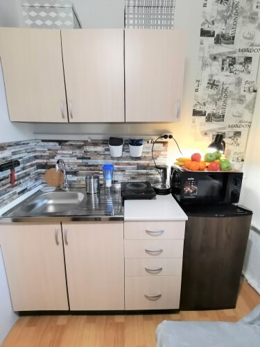 К услугам гостей двухуровневые студии. Каждая студия оснащена собственной ванной комнатой с душем и туалетом и своей мини-кухней с раковиной, холодильником с морозильным отделением, микроволновкой, электрочайником, индукционной плитой, посудой и столовыми приборами. В каждой студии для приготовления пищи есть растительное масло, соль, сахар, чай.
