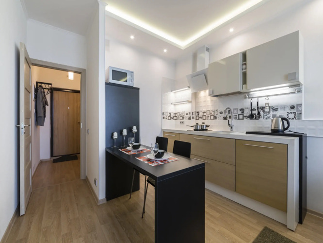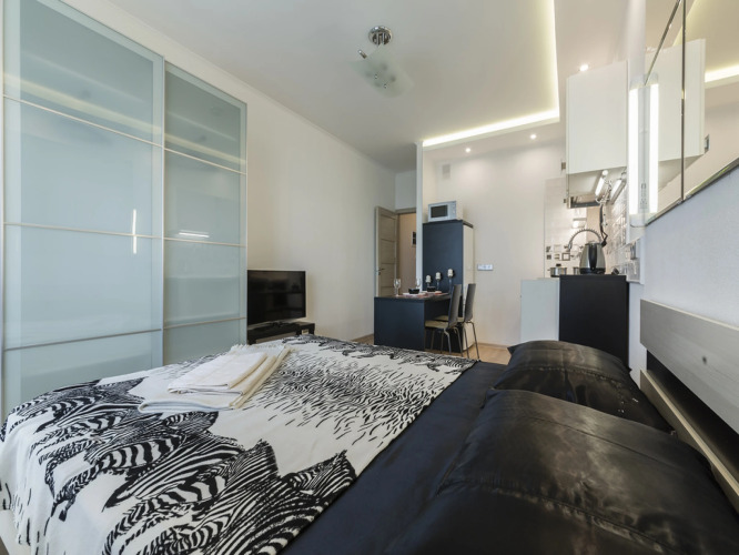 Чистоту в квартире гости поддерживают самостоятельно. Доступна платная уборка: 1,500.00 RUB за уборку.