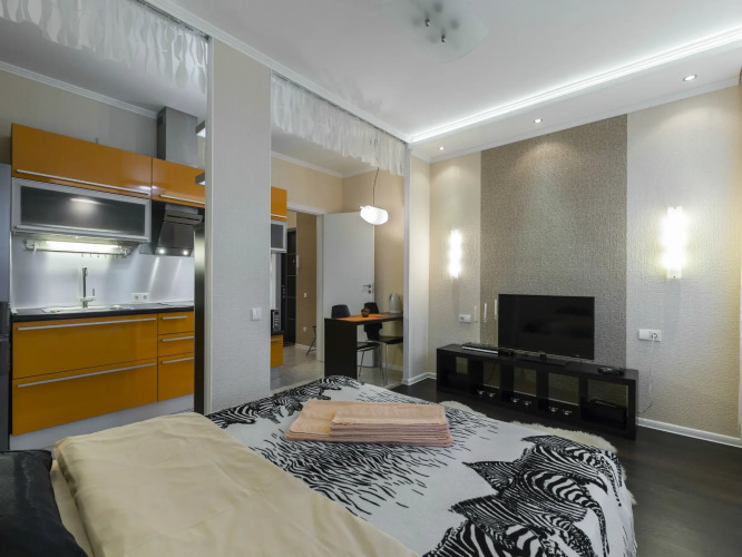 Доступная среда: работает лифт. А ещё в распоряжении гостей индивидуальная регистрация заезда и отъезда, наличие гладильных принадлежностей и консьерж. Сотрудники поддержат беседу на русском. Апартаменты находятся в доме с охраняемой территорией.