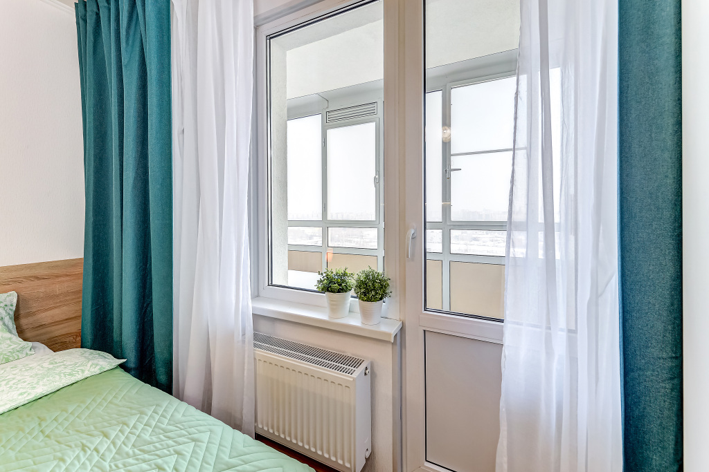 Есть лоджия, откуда открывается вид на реку Охта и парк.