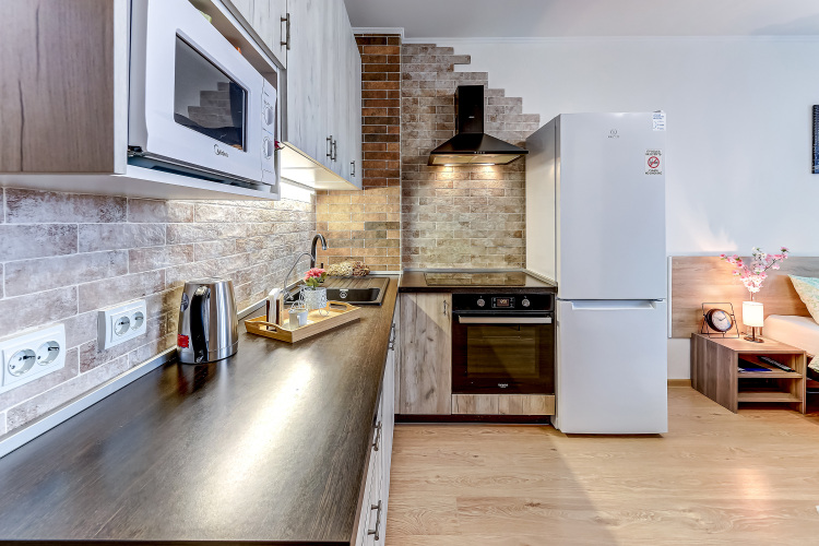 Кухня с дизайнерским оформлением оборудована для самостоятельного приготовления блюд. В распоряжении гостей двуспальная кровать-трансформер. Доступна бесплатная сеть Wi-Fi, предоставляются постельное бельё и полотенца.