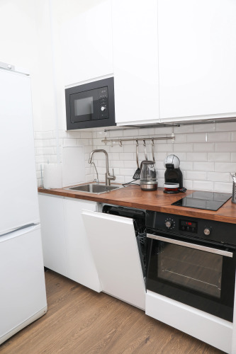 Доступная среда: работает лифт. А ещё в распоряжении гостей гладильные услуги. Сотрудники апартаментов поддержат беседу на русском.