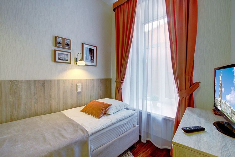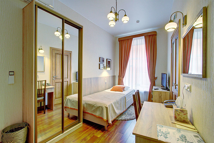 Однокомнатный номер с одной односпальной кроватью и ванной комнатой с ванной. В номере телевизор, телефон, кондиционер, фен, сейф. Бесплатный Wi-Fi. Виз из окна номера на тихий внутренний дворик.