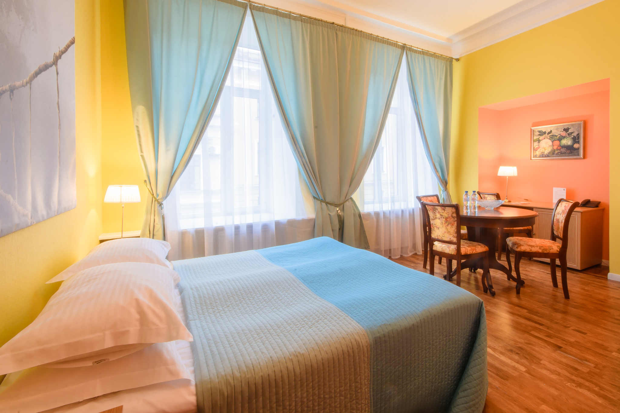Элегантный отель располагает 46 номерами различных категорий: Стандарт, Полулюкс, Апартаменты, Люкс для молодоженов, Люкс "Министерский". Каждый из номеров имеет неповторимый дизайн, часть из них выходит окнами на Вознесенский проспект, часть на улицу Декабристов, остальные - в тихий двор. Авторский дизайн интерьеров, современное оснащение удобное расположение и качественный сервис делают отель "1913 год" идеальным местом проживания как для путешественников, так и для деловых людей. На первом и втором этажах располагается ресторан, где Вы всегда сможете приятно провести время. В ресторане русское и европейское меню, по вечерам с 20.00 живая музыка.