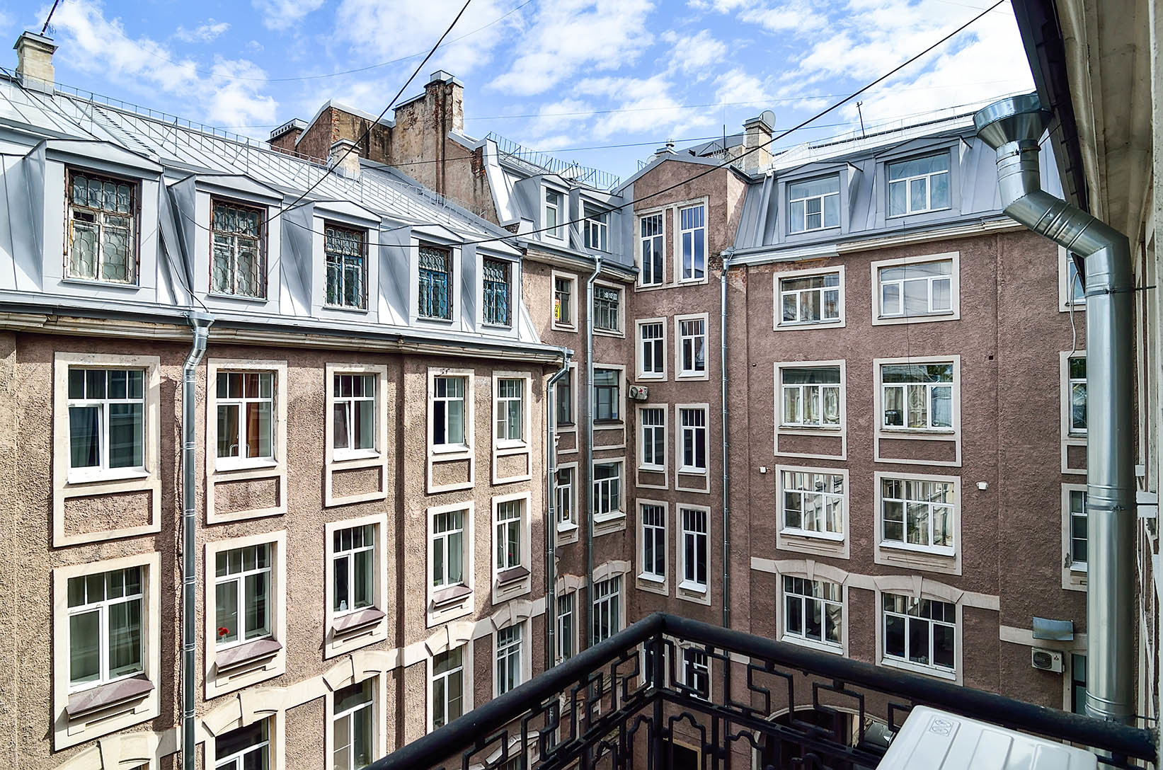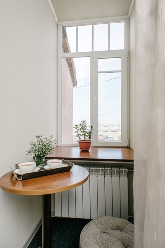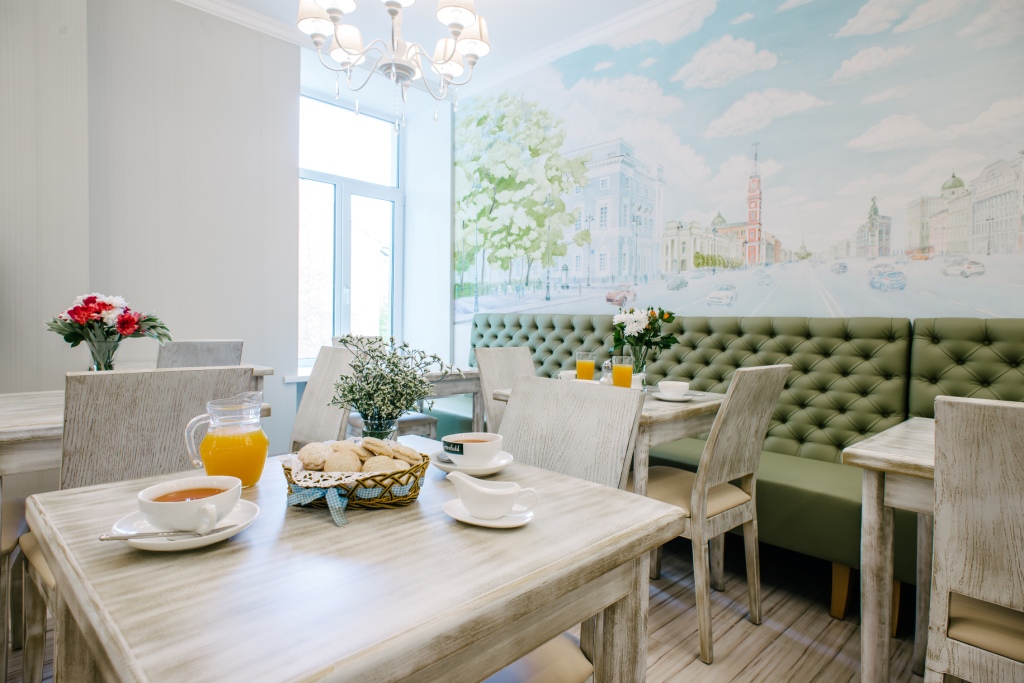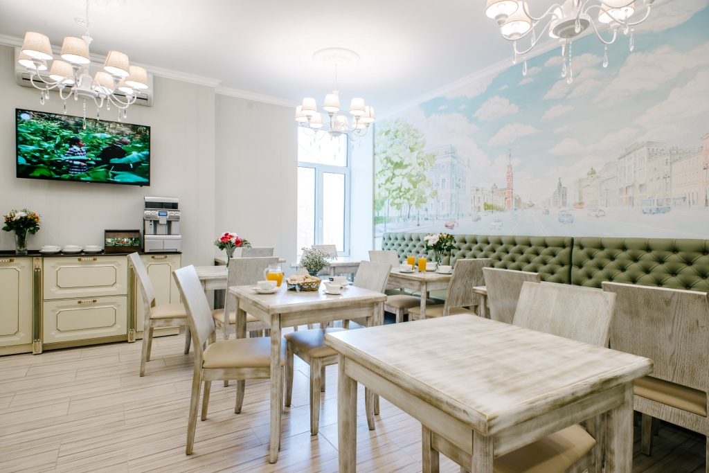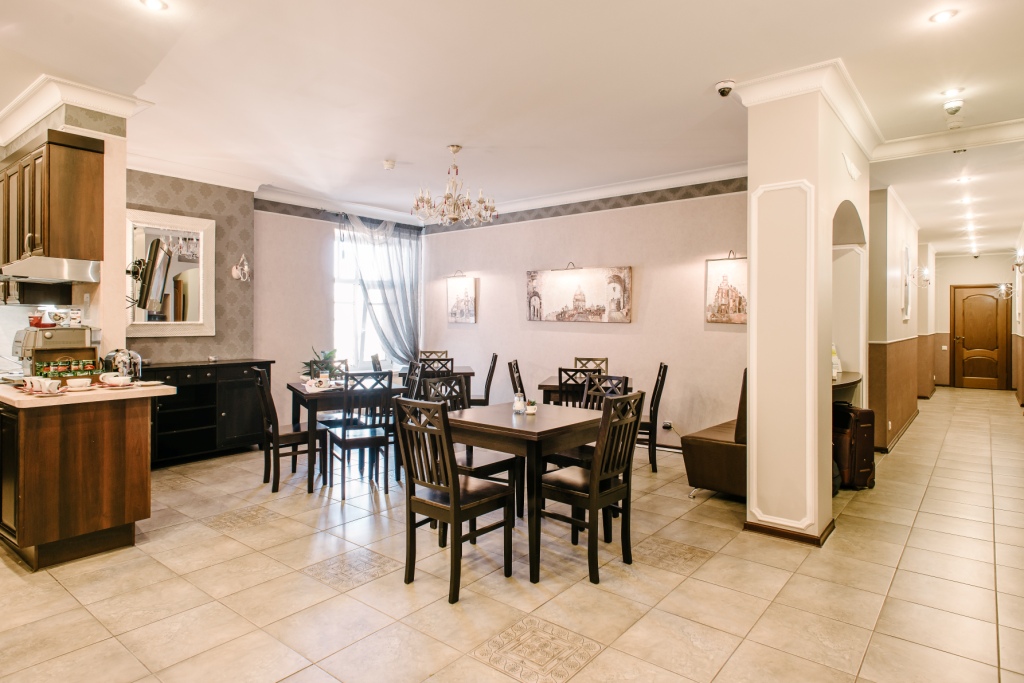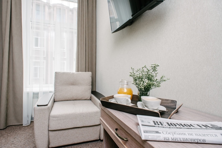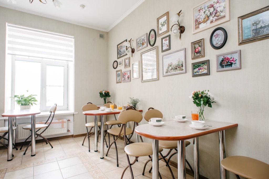 Из окон комнат и апартаментов открывается вид во внутренний дворик в итальянском стиле. В течение дня гости комнат могут воспользоваться чайно-кофейными зонами, оборудованными кофемашиной, чайником, кулером, СВЧ и посудой бесплатно.