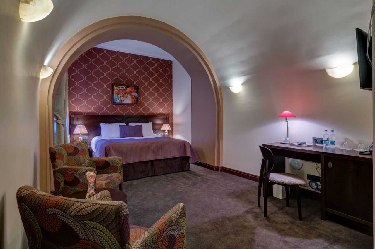 Вы можете выбрать номер в отеле любого уровня: от Standard до Luxe. Номера в гостинице выполнены в изысканном стиле, выдержаны в пастельных тонах и имеют современное оснащение.