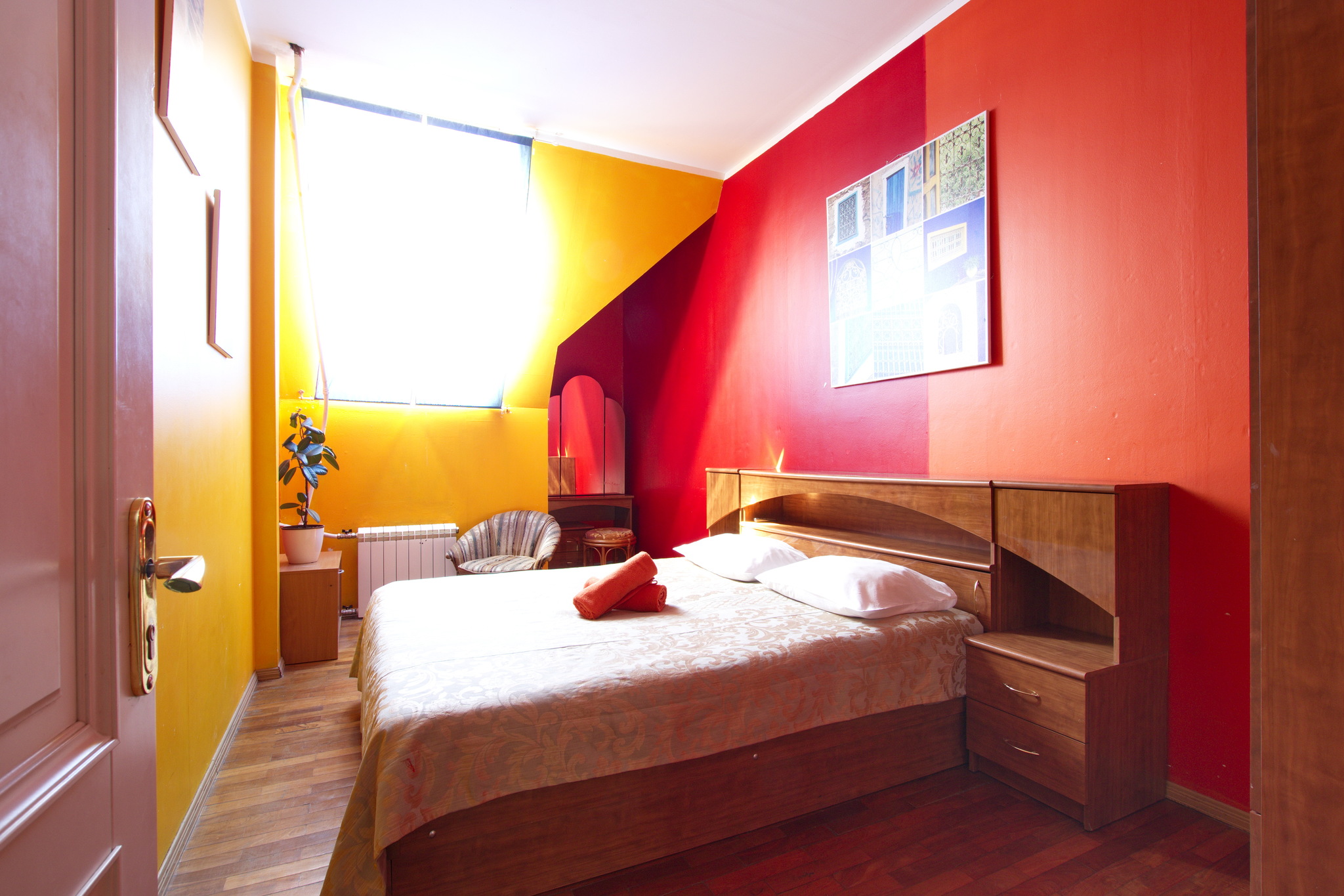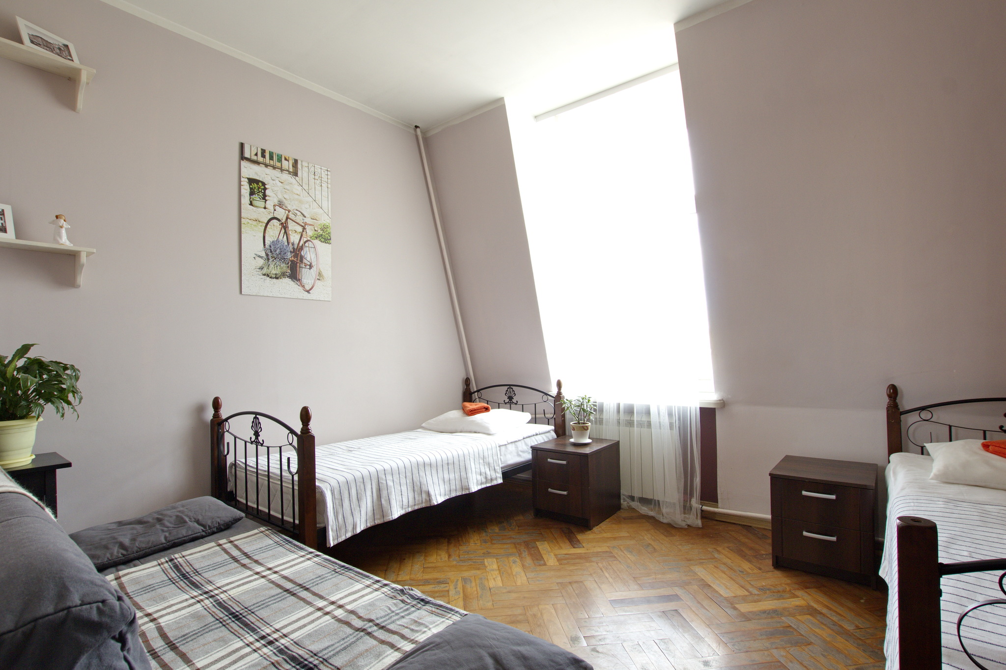 В хостеле имеются: 1 номер на 8 персон, 1 номер на 3 персоны, 1 номер на 4 персоны и 3 номера на 2 персоны. В одной из комнат роскошная большая лоджия с видом на старый Петербург - мечта любого туриста. В Вашем полном распоряжении просторная и уютная кухня-гостиная с плетеной мебелью и удобными диванами. Большая кухня оснащена всем необходимым - холодильник, СВЧ-печь, тостер, газовая плита с духовкой, электрический чайник.
