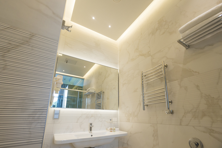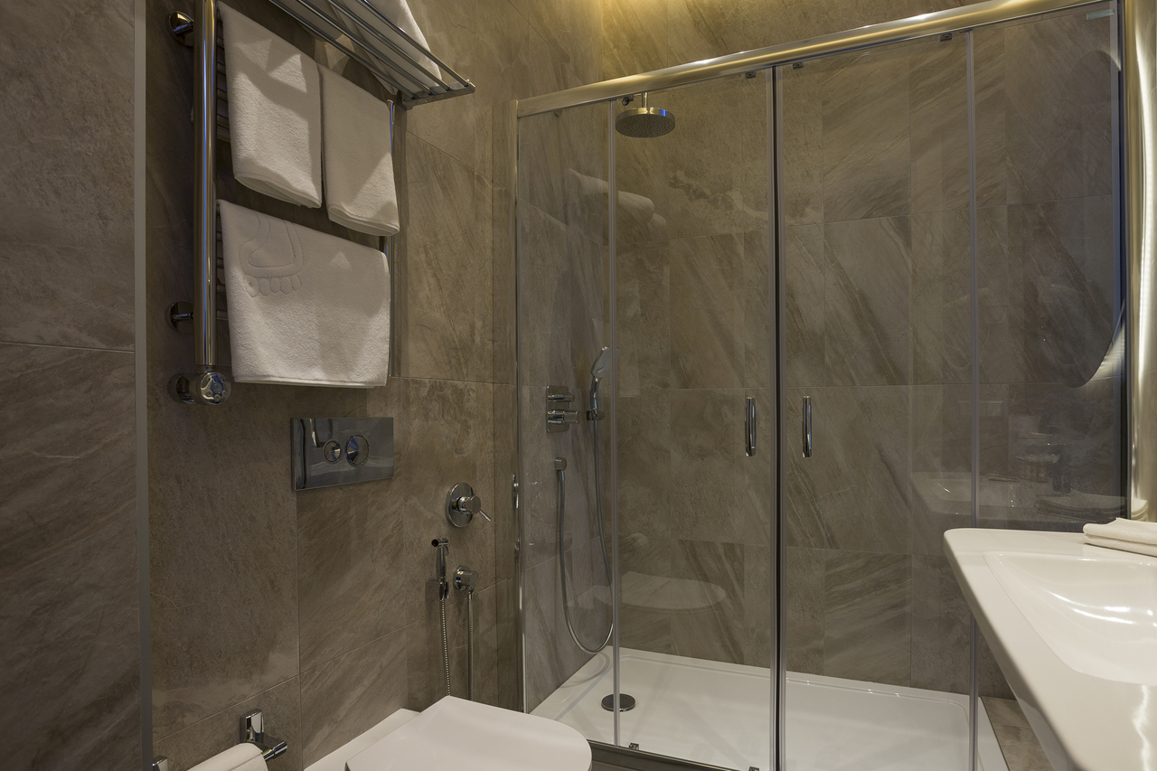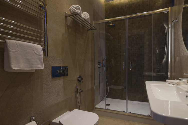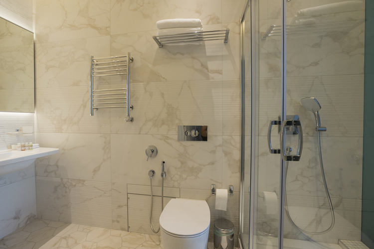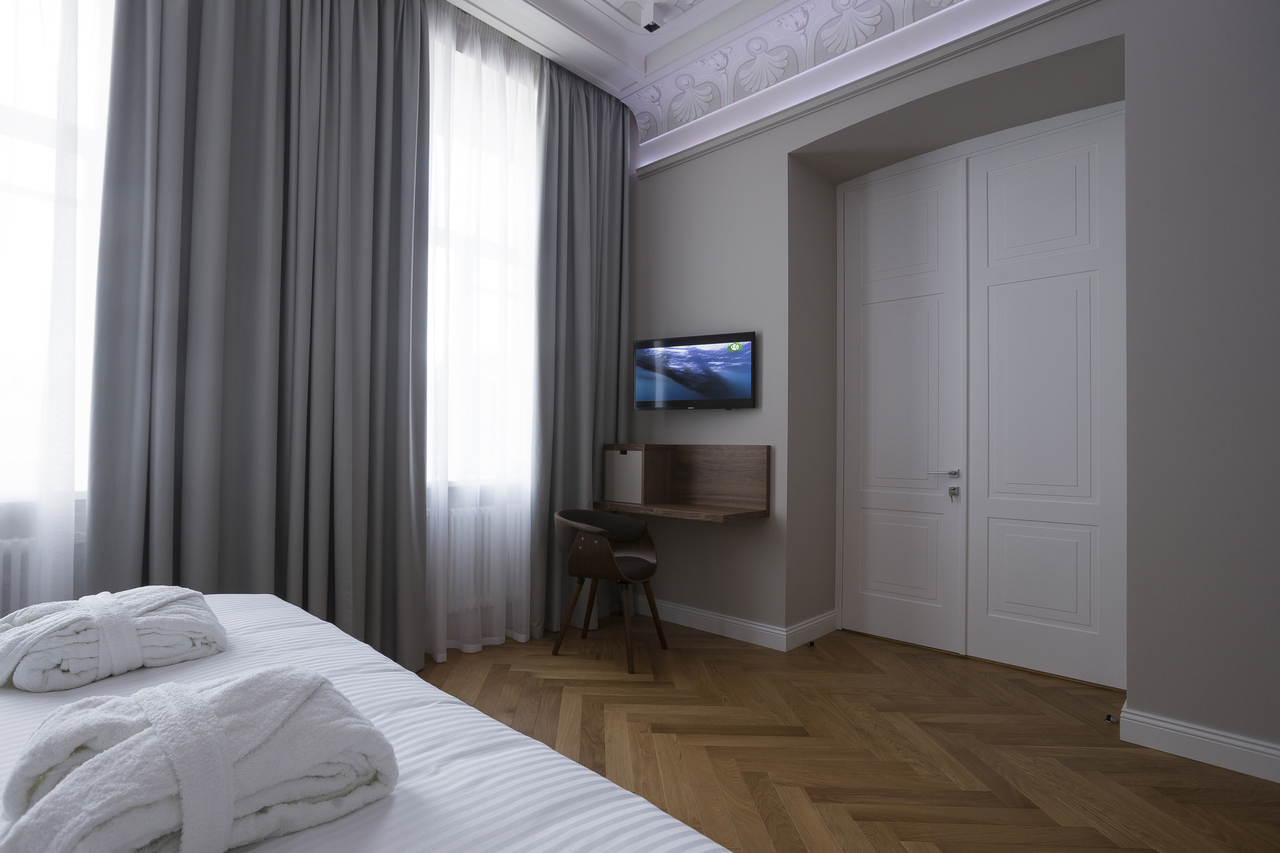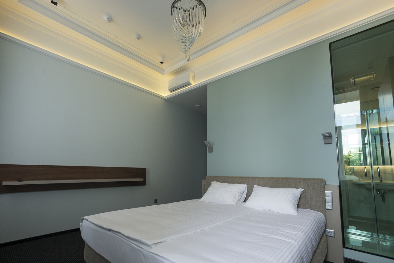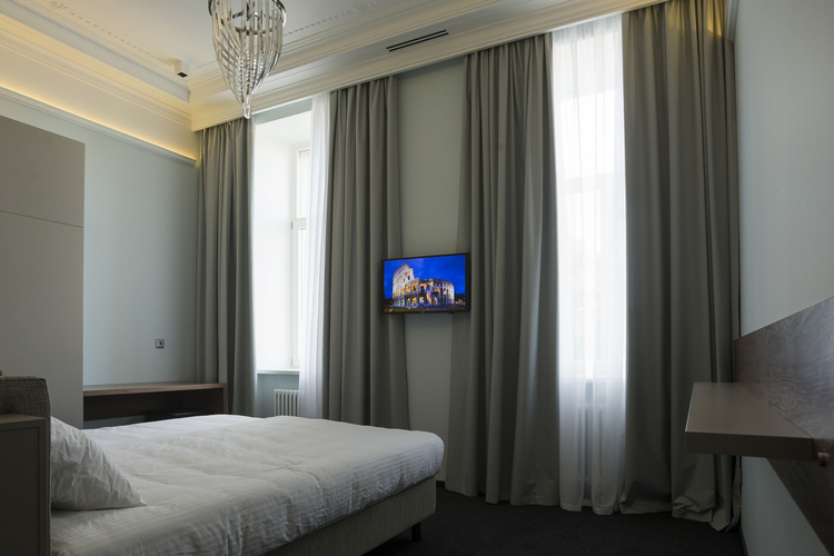 Уютный номер, оформленный в светлых тонах с видом на Итальянский дворик, оборудован 2 односпальными или 1 двуспальной кроватью, SmartTV, мини-баром. Отдельная ванная комната с душем.