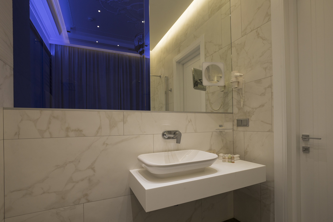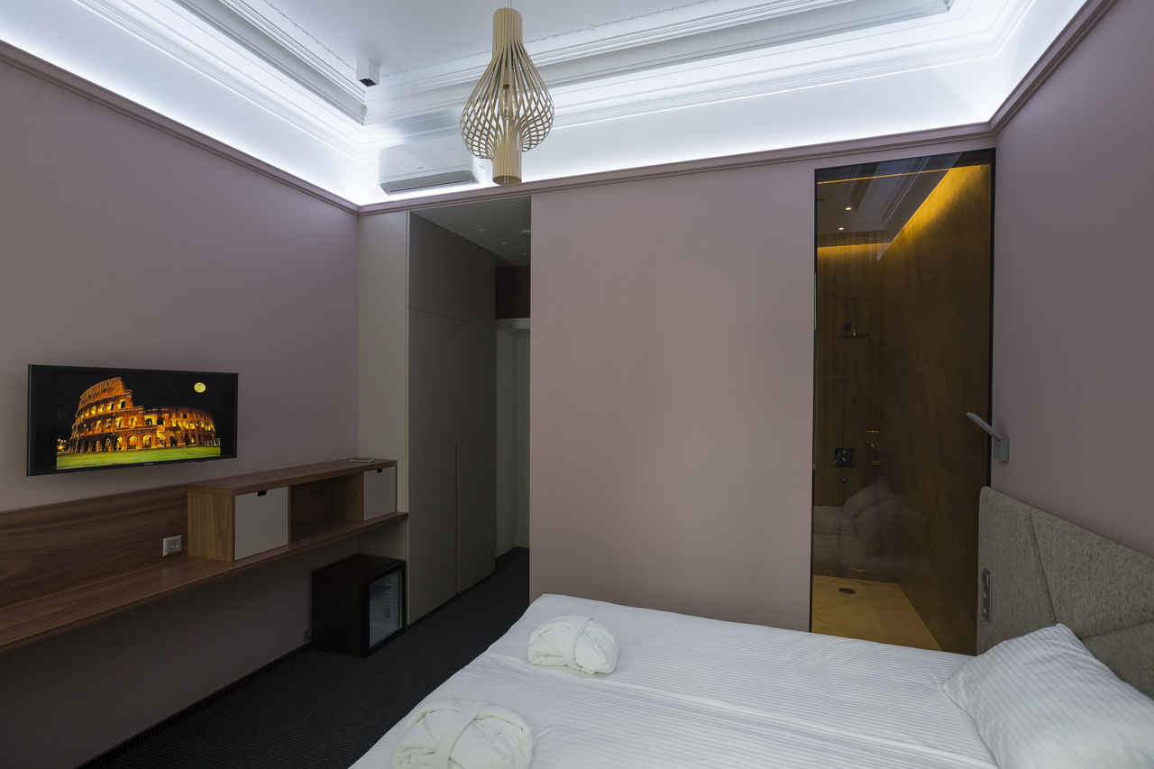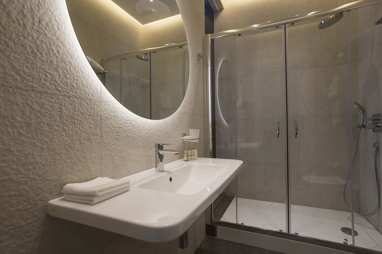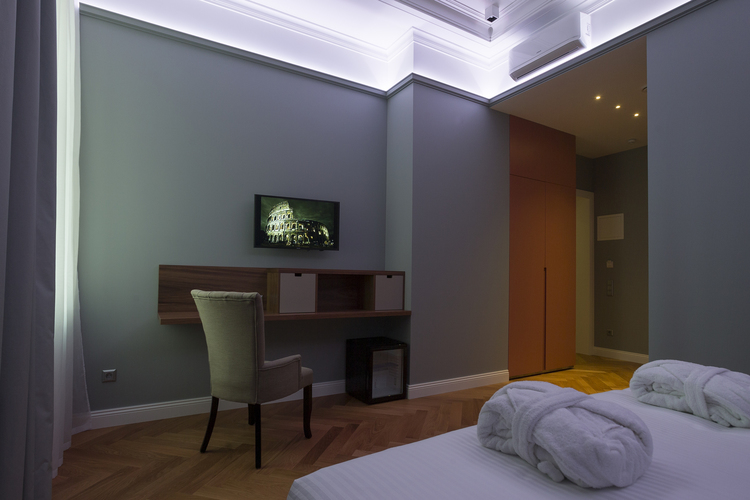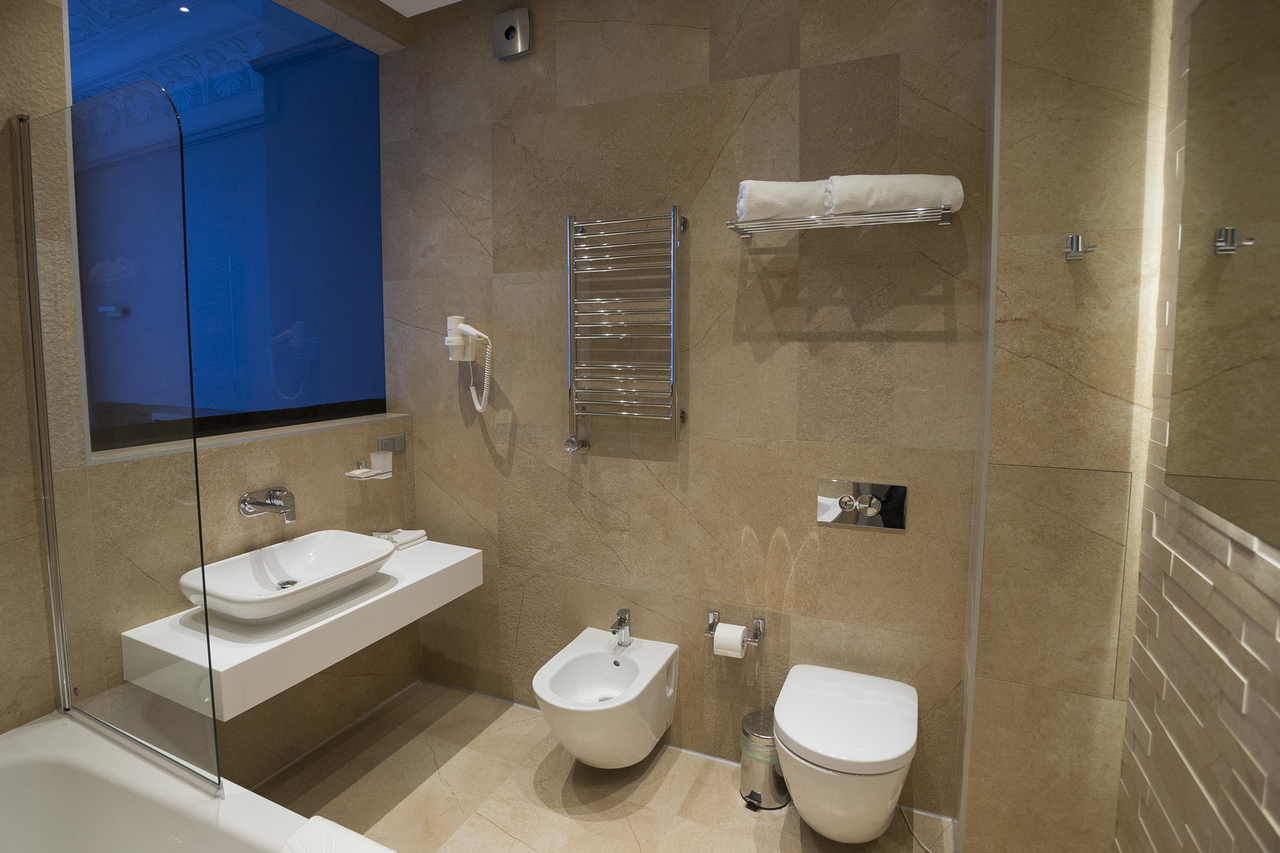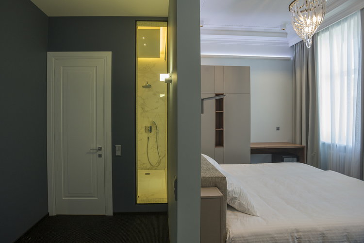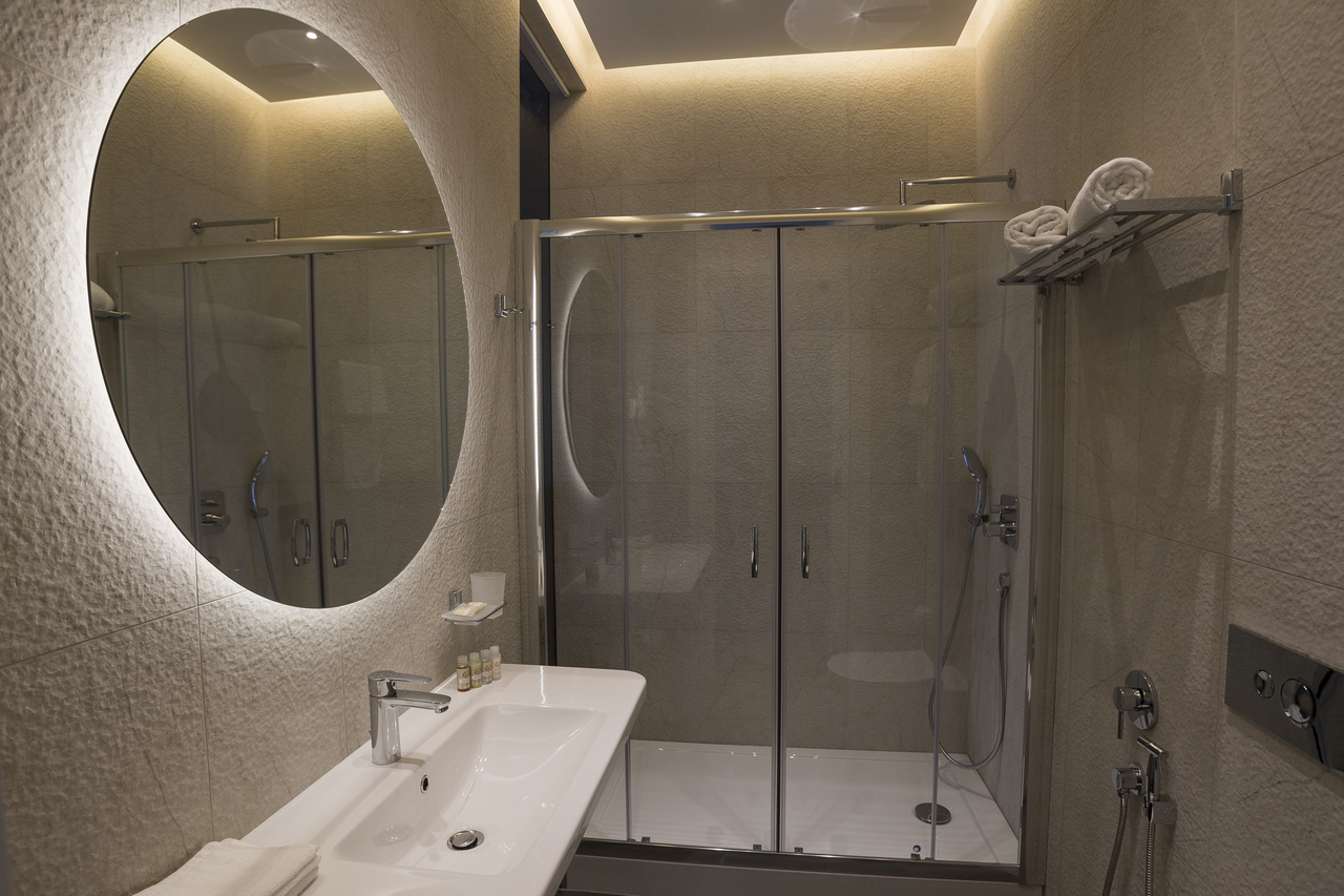 Уютный номер, оформленный в светлых тонах с видом на Итальянский дворик, оборудован 2 односпальными или 1 двуспальной кроватью, SmartTV, мини-баром. Отдельная ванная комната с душем.