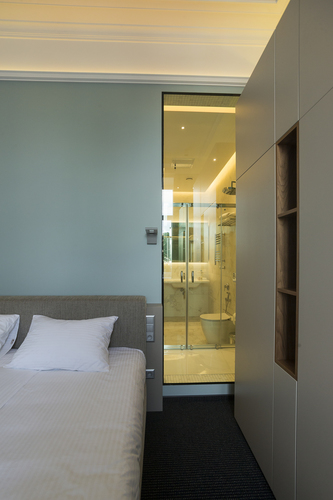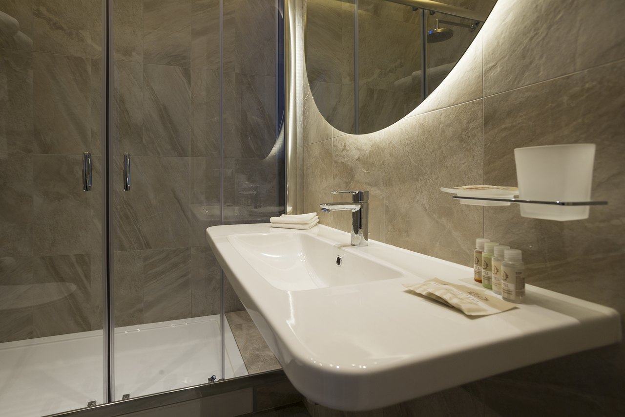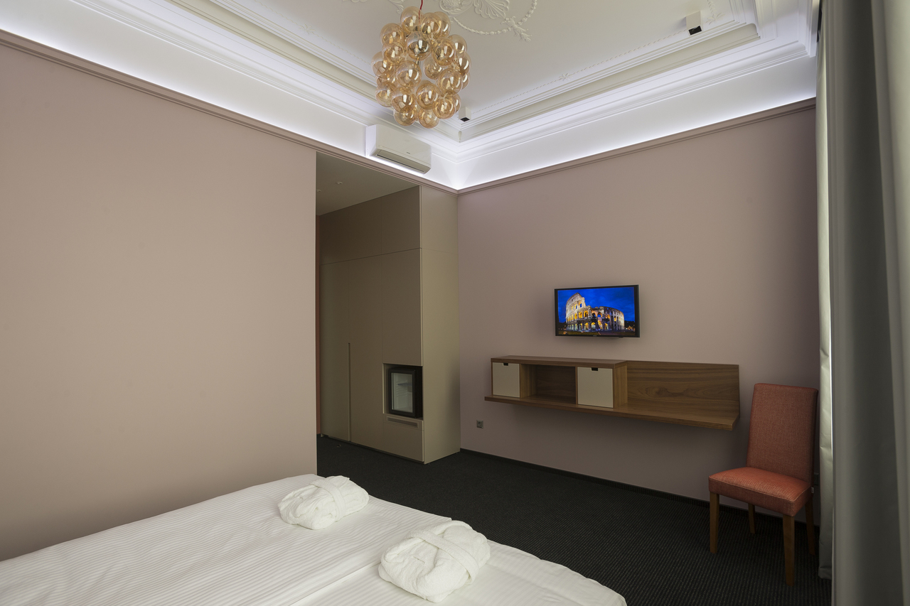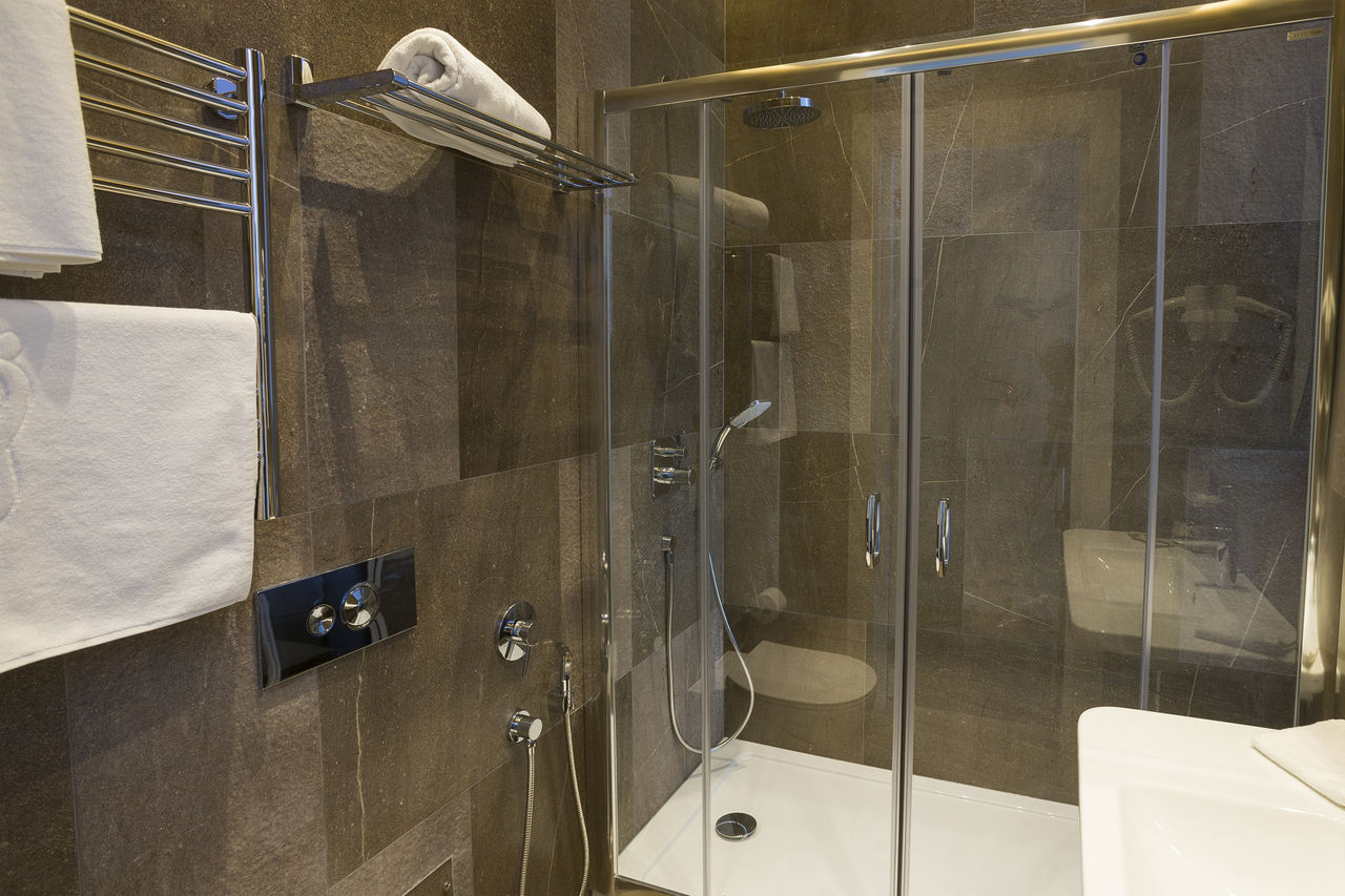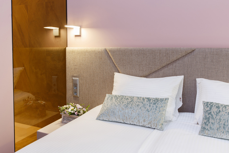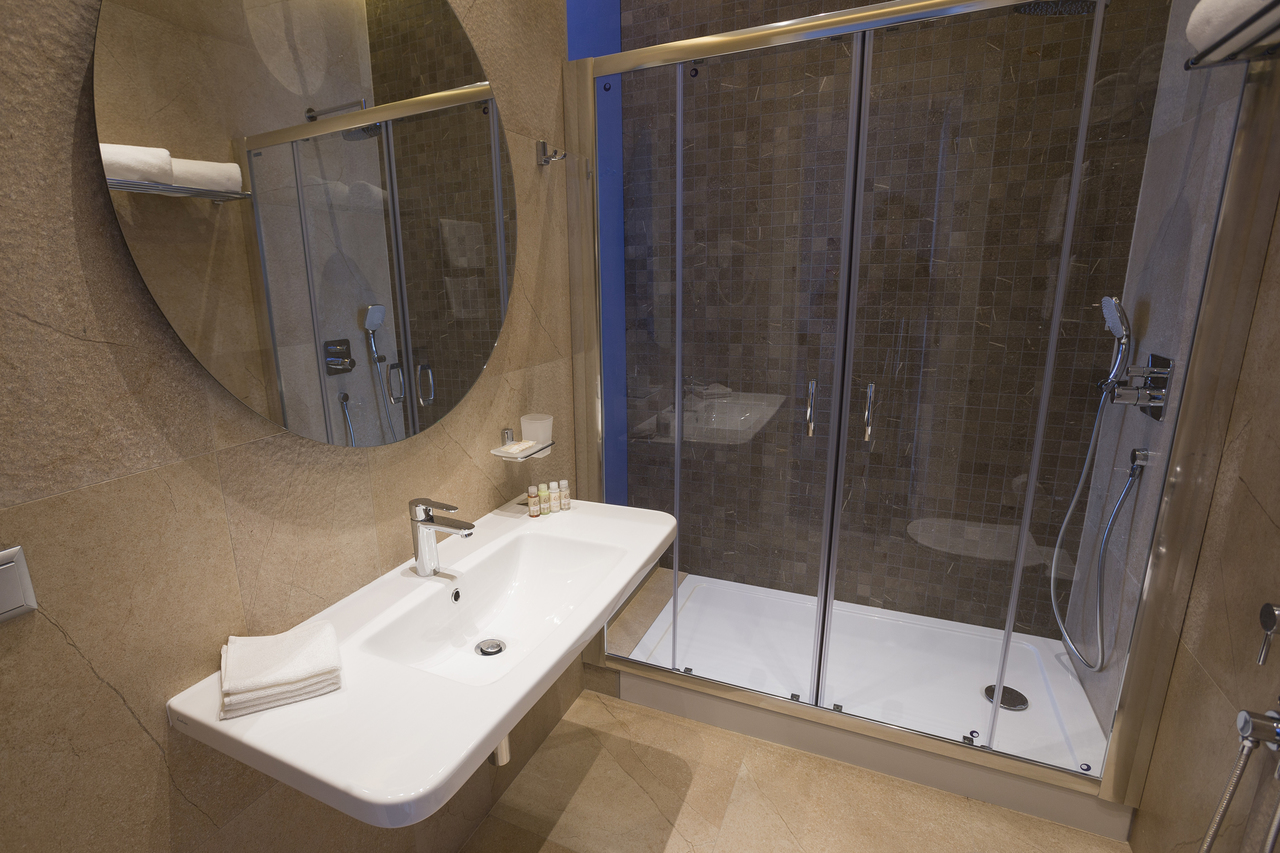 Уютный номер, оформленный в светлых тонах с видом на Итальянский дворик, оборудован 2 односпальными или 1 двуспальной кроватью, SmartTV, мини-баром. Отдельная ванная комната с душем.