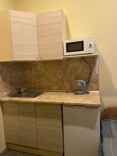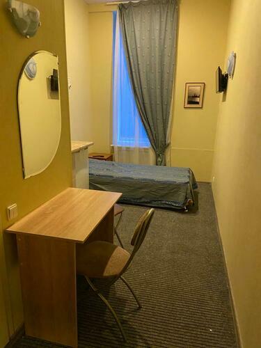 Номер 10 кв.м. В номере односпальная кровать (ширина 90 см), шкаф, телевизор, кухня со всем необходимым (посуда, столовые приборы, холодильник, микроволновая печь, электрический чайник). Максимум для проживания 1 человек.