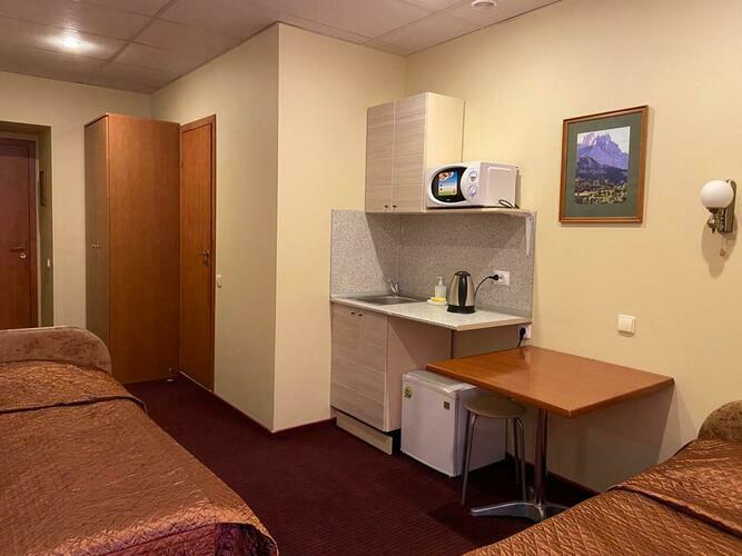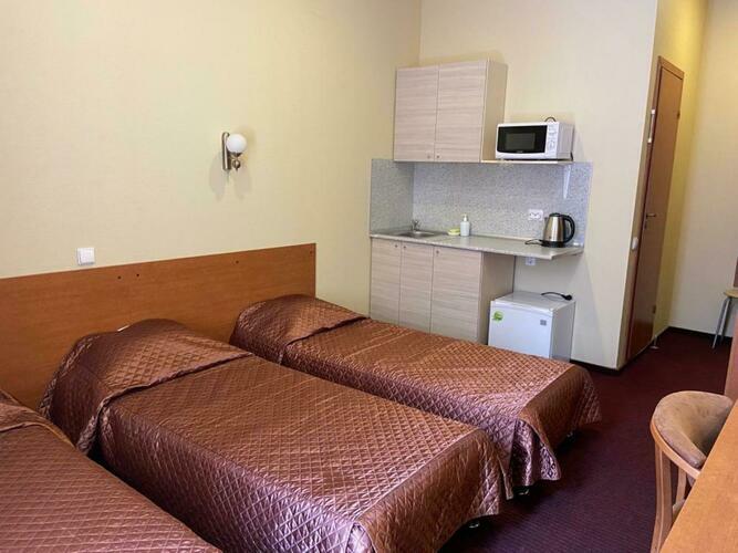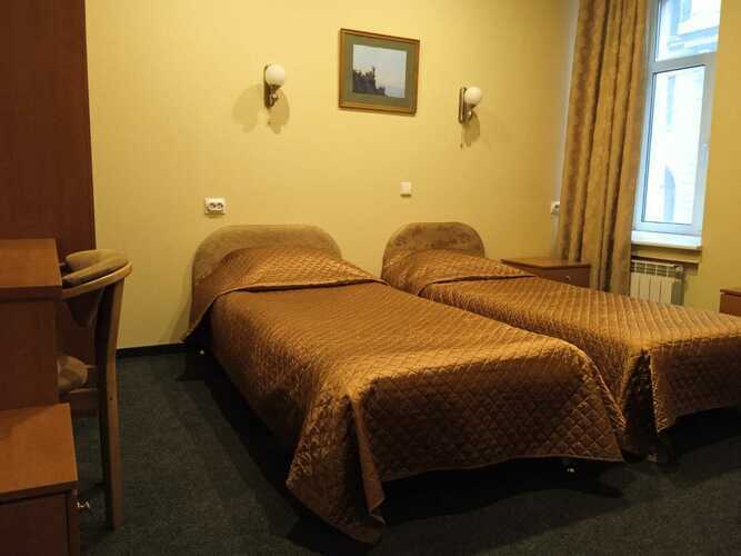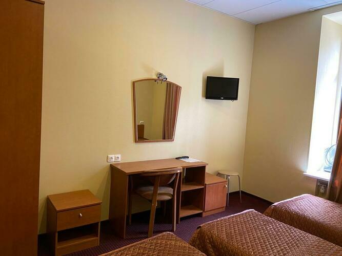Номер 16 кв.м. В номере 2 раздельные кровати, сейф, душ, туалет, TV, телефон. В ванной комнате имеются разовые туалетные принадлежности. Окна выходят во двор или на Красноармейскую улицу. Курение в номере запрещено.