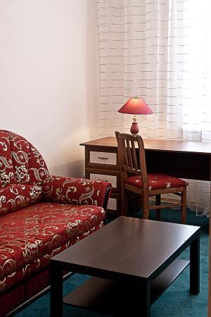 Для гостей отеля - 5 стандартных просторных уютных номеров, 3 номера улучшенной планировки и 3 номера повышенной комфортности. Все номера оснащены телевизором, телефоном, холодильником, сейфом, интернетом (WI-FI), кондиционером. Бесплатная парковка.
